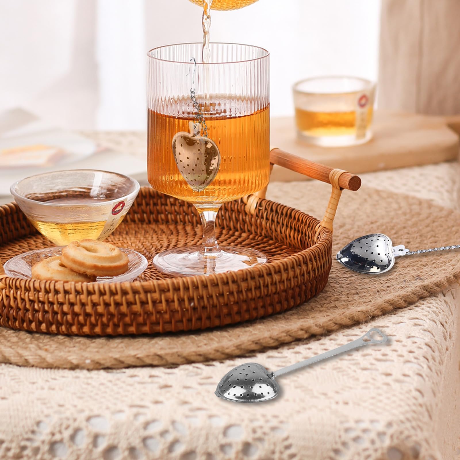 Passoire Thé Vrac 4 Boules à Thé En Forme De Cœur - Infuseurs Inox 【Matériau】: la passoire à thé est fabriquée en acier inoxydable 304, qui ne contient pas de produits chimiques nocifs, elle est antirouille, réutilisable et durable. Infuseur Thé Forme Coquillage Coeur GLOGLOW Thé En Vrac Infuseur En Acier Inoxydable Amour Coeur Forme Passoire Thé En Vrac Lot 3 Lot de 3 plateaux à thé Nos infuseur thé en vrac permettent aux feuilles de thé en vrac de se dilater complètement pendant le trempage, de sorte que vous obtenez cette tasse de thé fraîche parfaite chaque fois que vous les utilisez Qualité professionnelle : La passoire à thé en acier inoxydable 304 de haute qualité, ce qui la rend durable, difficile à rouiller, sûre à utiliser et inodore. Elle ne contient aucun produit chimique nocif, par rapport aux matières plastiques, Il est plus sûr d'être immergé dans de l'eau chaude et cela peut protéger votre boisson des odeurs particulières et du mauvais goût... Ils sont assez grands pour une théière de thé, mais aussi assez petits pour tenir dans n'importe quelle tasse que vous pourriez utiliser avec 3 plateaux. 【Facile à nettoyer】 : tournez le dessus et rincez, cela ne pourrait pas être plus facile. Large application : parfait pour une théière, une tasse à thé, des herbes, des épices ou du thé en vrac, nos passoires à thé sont très adaptées pour la maison, la cuisine, le bureau. Il vous suffit de remplir le panier avec les feuilles de thé et de le fermer. Passe au lave-vaisselle, mais tout aussi facile à rincer et à sécher à l'air libre. Lot de 3 infuseurs à thé en vrac en forme de coquillage en forme de cœur Passoires à thé en acier inoxydable 304 pour thé en vrac, excellent cadeau pour les amateurs de thé L'infuseur à thé en vrac est essentiel pour tous les amateurs de thé ; il peut remplacer l'ancien sachet de thé ; Apportez à vos amis et votre famille le plaisir de préparer leurs premiers thés infusés et infusés frais Caractéristiques : 1., La chaîne d'extension avec crochet est parfaite pour différentes tailles de tasses, théières, tasses et bouteilles., 2., La maille extra fine vous aide à infuser différentes feuilles de thé, herbacées et épices.