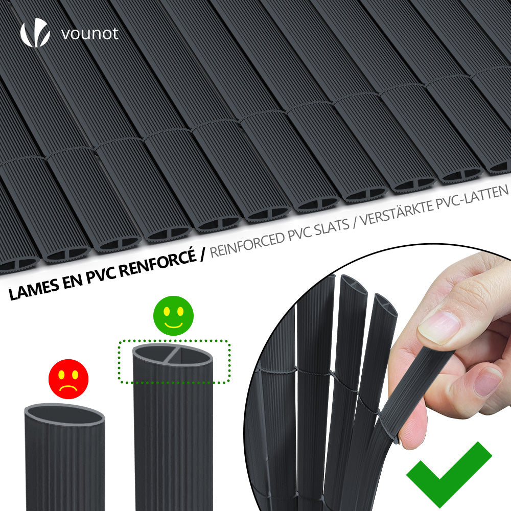 Brise Vue Jardin 1.2M X 25M - Brise-Vue Occultant Avec Tissage Renforcé Son design sobre et élégant s’adapte à tous types d’aménagements, que ce soit une clôture en grillage, une rambarde de balcon ou un mur de terrasse. Kit Fixation Brise Vue Vounot Canisse En PVC Brise Vue Ultra Renforcé Avec Attaches De Brise Vue Bois Anthracite Ce modèle de 1,23 m de hauteur sur 25 m de long est idéal pour recouvrir une grande surface sans raccord. Découvrez avec ID Market toute une gamme de brise vues gris anthracite. Pour un coin de jardin, un balcon ou votre terrasse, vous profitez en toute sérénité de votre espace extérieur tout en restant à l’abri des regards indiscrets Brise Vue Renforcé 1.2 X 25 M Brise Vue Pour Balcon Hdpe Barrière... DIMENSIONS: Brise-vue mesurant 1,23 mètres de hauteur sur 25 mètres de longueur, idéal pour les grands espaces extérieurs Grâce à ses fixations incluses, l’installation est simple, rapide et ne nécessite aucun outillage particulier. PROTECTION OPTIMALE: Conception dense assurant une excellente occultation pour préserver votre intimité dans votre espace extérieur Conçu pour durer grâce à son grammage élevé de 280 g/m², il vous protège des regards indiscrets tout en résistant aux conditions climatiques les plus rudes. Offrez-vous une solution durable, esthétique et facile à mettre en place pour vos extérieurs. Transformez vos espaces extérieurs en zones de confort et d’intimité avec ce brise vue renforcé gris anthracite.