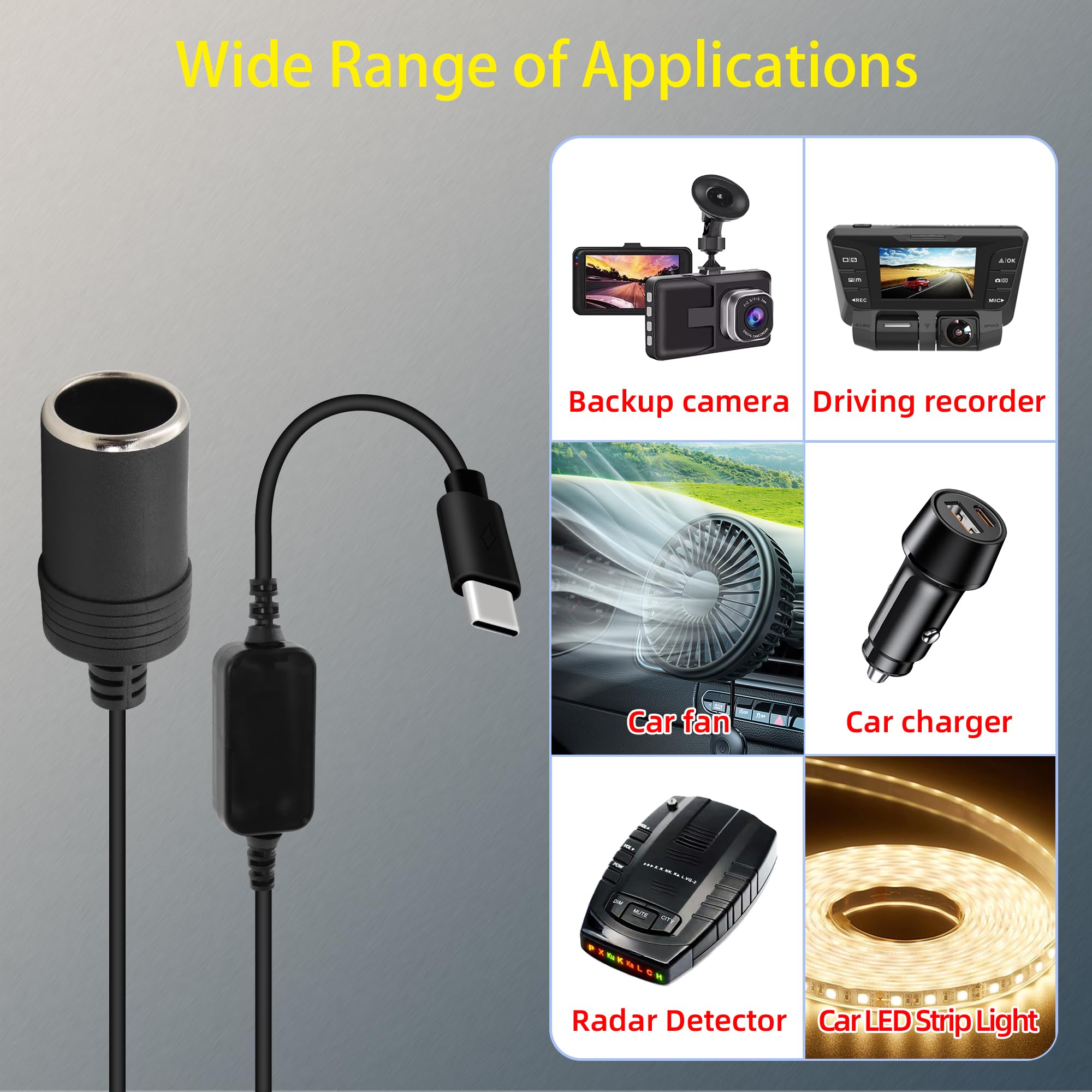 Nom du produit: Câble convertisseur USB-C mâle vers allume-cigare femelle 12V avec affichage de tension Couleur: Noir Quantité: 1 pièce Taille: Longueur du câble 1,2 m (120 cm) Matériau: Conducteur en cuivre pur, gaine résistante en plastique isolant Puissance max: 12V / 3A (36W) Cet adaptateur convertisseur USB-C vers allume-cigare femelle 12V est la solution idéale pour tous ceux qui souhaitent utiliser leurs appareils 12V via une entrée USB-C. Que ce soit pour un usage quotidien ou lors de voyages plus longs, cet adaptateur est un accessoire indispensable pour exploiter pleinement vos appareils électroniques en déplacement. Sécurité intelligente: Protection intégrée contre surtension, surintensité, surcharge et court-circuit. Alimentation fiable: Courant max. Idéal pour brancher GPS, dash cam, mini ventilateurs, lampes LED ou chargeurs voiture. Câble convertisseur pratique: Ce câble convertisseur USB-C mâle vers allume-cigare femelle 1,2 m transforme un port USB-C en une prise allume-cigare 12V classique. Pour Dashcam GPS Chargeur Voiture Vvikizy Port USBC Vers Prise Femelle Allume‑cigare De Voiture USB Vers Câble Usb-c Allume-cigare Cuque Port USBC vers prise allume-cigare de voiture 12V USB à voiture Grâce à sa conception robuste et à son affichage voltmètre, il allie sécurité, confort et durabilité. Grâce à son voltmètre intégré, vous pouvez vérifier instantanément la tension de votre batterie et la consommation de vos équipements connectés. Spécifications techniques: Longueur 1,2 m (120 cm), courant max. Convient pour enregistreur de voiture, chargeur de voiture, chien électronique, etc., ne prend pas en charge l'aspirateur de voiture, la pompe à air et autres... Utilisation et objectifs: Ce câble convertisseur USB-C mâle vers allume-cigare femelle 12V est conçu pour offrir une alimentation fiable aux appareils fonctionnant uniquement sur une prise allume-cigare. Vos appareils sont protégés de manière fiable, même en cas d’utilisation prolongée Affichage voltmètre intégré: Grâce à l’écran de tension inclus, ce câble USB-C mâle vers allume-cigare femelle permet de surveiller en temps réel l’état de votre batterie et de vos appareils. rallonge a prise de secteur vers allume cigare – – Vente du... Sécurité renforcée: L’adaptateur convertisseur USB-C allume-cigare est équipé d’une puce intelligente offrant une protection complète : anti-court-circuit, surintensité, surcharge et surtension. La gaine résistante assure une excellente durabilité, adaptée à une utilisation régulière et intensive Matériaux de qualité: Conducteur en cuivre pour une transmission stable, gaine durable pour résister à l’usure quotidienne.