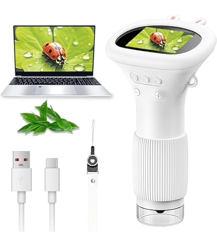 Microscope Numérique Enfant WADEO Mini Microscope Numérique Portable, 100x Loupe De Lecture Lneuse, Loupe Avec Lère Blanche Le Petiscope WADEO Microscope Numerique USB HD Portable Endoscope Loupe pour Plante Rose - Mini caméra vidéo numérique pour enfants, 1080P, double objectif, écran IPS de 2.0 pouces... Il capture photos et vidéos (l'enregistrement vidéo nécessite une connexion PC), offrant aux enfants un outil complet pour explorer et documenter leur environnement. OBSERVATION ULTRA-PRÉCISE : Doté d'un écran IPS HD 2 pouces aux couleurs vibrantes, ce microscope pour enfants garantit une clarté exceptionnelle. FONCTIONNALITÉ PHOTO : La capture photo instantanée par simple bouton permet aux enfants d'immortaliser leurs découvertes. FONCTIONNALITÉS AVANCÉES : Ce nouveau design 2-en-1 intègre deux caméras permettant une observation microscopique et une photographie à deux focales différentes. Avec une capacité de stockage de 100 photos, ils peuvent archiver et revoir leurs observations, stimulant leur curiosité scientifique. IDÉAL POUR ENFANTS : Grâce à ses fonctions photo/vidéo, ce microscope éducatif éveille la curiosité scientifique tout en facilitant le partage intergénérationnel. Un cadeau parfait pour stimuler l'apprentissage et renforcer les liens parents-enfants ou enseignants-élèves. Choix Parfait : Ce microscope fait un super cadeau d'anniversaire ou de Noël pour votre enfant. Il est spécialement conçu pour la curiosité des enfants de 3 à 12 ans et possède une adorable coque en silicone en forme de lion