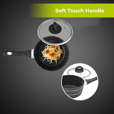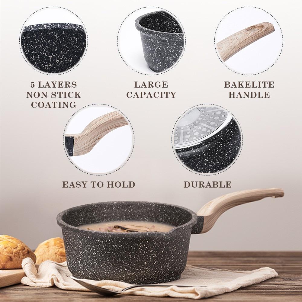 Les poignées ergonomiques en acier inoxydable offrent une prise sûre et confortable, et le couvercle en verre thermorésistant avec soupape de vapeur améliore la cuisson en conservant la chaleur. Son couvercle en verre thermorésistant concentre la chaleur pour une cuisson plus efficace. 🔥 Efficacité énergétique dans votre cuisine : Cette casserole haute antiadhésive de 20 cm est dotée d'un fond diffuseur Full Induction qui assure une distribution rapide et uniforme de la chaleur, vous permettant d'économiser de l'énergie à chaque utilisation, que ce soit sur des plaques à induction, vitrocéramiques, à gaz ou électriques. Cuve Cookeo WECOOK HIGH SAUCEPAN GRANITE 24 Cms. Pas Cher Casserole Durable Aluminium Sa robustesse est idéale pour supporter une utilisation quotidienne et les variations thermiques, tandis que sa compatibilité avec le lave-vaisselle facilite le nettoyage. Son élégante finition noire mouchetée apporte du style à n'importe quelle cuisine. Smith Nobel White Granite Plus 20 cm Saucepan with Lid ✋ Manipulation sûre et confortable : Équipée de poignées ergonomiques en acier inoxydable, cette casserole offre une prise confortable et sécurisée, restant froide au toucher pour éviter les accidents. 🌿 Cuisine saine et écologique : Avec la casserole à induction WECOOK! Pans with a granite-like coating - granite pans | Gerlach Granite est parfaite pour préparer des ragoûts, des rôtis, en en faisant un élément central de la cuisine. Idéale pour les amateurs de gastronomie qui apprécient la fonctionnalité et l'esthétique, la casserole WECOOK! de 20 cm, savourez des recettes délicieuses en utilisant moins d'huile grâce à son revêtement antiadhésif sans PFOA. Descouvrez la haute qualité et le design sophistiqué avec la casserole haute WECOOK!, Granite de 20 cm. 🍲 Polyvalence culinaire à portée de main : La casserole WECOOK!