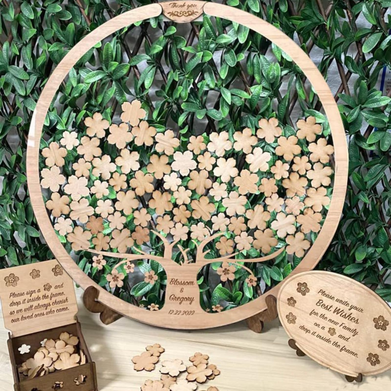 Nous sommes heureux de partager les moments chaleureux de votre mariage avec vous ! La taille de la boîte pour feuilles dépend du nombre de feuilles. Contenu de la livraison : Livre d'or (feuilles d'arbre pour les invités)., - Support en bois., - Panneau en bois. Tout ce qu'ils ont à faire est d'écrire tout sur une petite feuille de bois, de signer leurs souhaits et de déposer la feuille à l'intérieur du cadre. La personnalisation est obtenue en utilisant la découpe laser de pointe. Taille de la feuille : 3 cm. Arbre Genealogique Personnalisable WEIYOUDP Alternative Au Livre D'or De Mariage Personnalisé, Panneau Circulaire De Bienvenue Avec Feuilles, Arbre Généalogique, Anniversaire, Fête Prénatale, Anniversaire De Mariage, Décoration En Bois Décoration Mariage Personnalisée Tableau de Bienvenue Mariage Personnalisé - Automne Format tableau 20 x 180 feuilles : 55 cm de diamètre. Surprenez vos invités avec notre alternative au livre d'or de mariage personnalisé. Un cadre élégant s'adaptera à tous les intérieurs., 1., Alternative au livre d'or de mariage personnalisé – Feuilles d'arbre : ce magnifique arbre à cadre circulaire peut accueillir tous les souhaits et bénédictions que vos invités accordent à votre union. Imaginez et créez le panneau de mariage parfait pour votre cérémonie ! ✓ 100 % Personnalisable. ✓ 100 % Fabriquée en France 50 feuilles : 30 cm de diamètre. Ou accrochez le cadre du livre d'or de mariage au mur, qui peut être utilisé comme décoration intérieure, concept unique de livre d'or comme celui-ci gardera les souvenirs de votre jour spécial pour toujours., 5., Parfait pour toutes les occasions : le livre d'or est idéal non seulement pour les mariages, mais aussi pour les fêtes prénatales, les anniversaires, les fêtes, les baptêmes, etc. Nous recommandons cette variante pour les amateurs d'esthétique, pour les jeunes mariés au goût exceptionnel. Panneaux de bienvenue · Plans de tables · Boîtes à cartes · Numéros de table ... Alternative Livre d'or Mariage – L'arbre Noir. €49.00 – €119.00 Plage de prix... Tout ce qu'ils ont à faire est d'écrire tout sur une petite feuille de bois, de signer leurs souhaits et de déposer la feuille à l'intérieur du cadre., 2., Livres d'or de mariage : fabriqués à partir de matériaux de haute qualité, les livres de mariage pour les invités à signer mettent en valeur le charme intemporel de l'esthétique rustique, ce qui en fait la pièce maîtresse parfaite pour vos décorations de mariage pour la réception à l'intérieur., 3., Chaque commande comprend : 1., Livre d'or ; (petites feuilles pour les invités) – 2., Support en bois ; – 3., Panneau en bois en forme de fleur – 4., Boîte en bois pour ranger les feuilles d'arbre , 4., Livre d'or multifonction : après l'événement, vous pouvez mettre le livre d'or de mariage alternatif rempli de signatures d'invités dans la chambre ou le salon pour rappeler souvent les meilleurs vœux des autres. Les invités peuvent laisser leurs vœux ou messages personnels, rendant chaque événement plus personnalisé et inoubliable. - Boîte en bois pour ranger les feuilles d'arbre.
