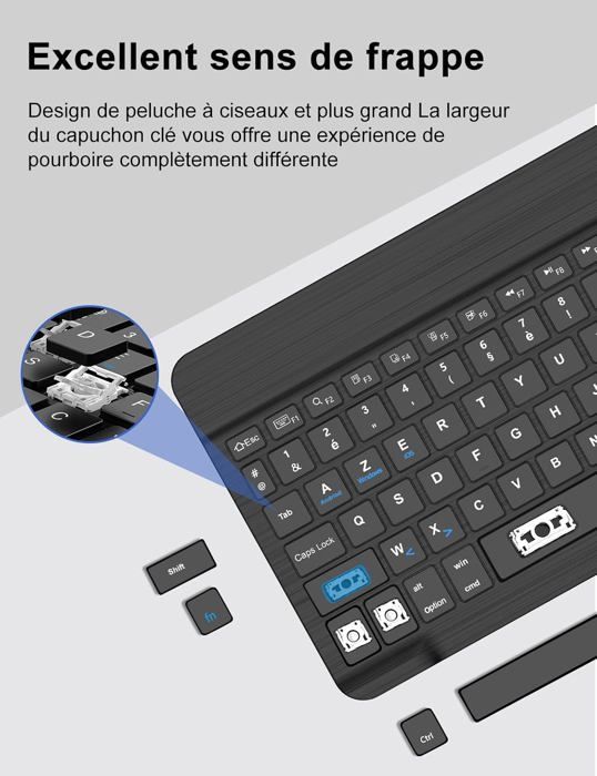 QYiiD Étui clavier rotatif pour iPad 9e/8e/7e génération 10,2, coque arrière transparente, support vertical transparent, touches rondes mignonnes, clavier sans fil détachable pour iPad 10,2/iPad Air Excellent sentiment de devinettes - l'apparence ultra-mince du clavier iPad 9th Generation avec conception de bouton de pied à ciseaux et plus grande largeur de capuchon de clé vous offre une expérience de pourboire complètement différente, même si vous appuyez sur une tablette. Clavier Ipad 9eme Génération WINCHKING Clavier Pour IPad 9 ème - Coque Clavier Pour IPad 10,2 Pouces (9ème 2021 / 8ème 2020 / 7ème 2019), AZERTY Clavier IPad 10,2 Pouces Solide durée de vie de la batterie - Vous pouvez rapidement basculer entre vos appareils., Convient à votre iPad 10., 9, ce clavier a une interface de type C qui est chargée pendant 2 à 3 heures et peut fonctionner en continu jusqu'à 70 heures avec une utilisation normale. Clavier iPad 9ème génération Transformez votre iPad 9ème génération en véritable ordinateur portable avec un clavier dédié. Avec une connexion sans fil, une conception ergonomique et des touches réactives, le clavier pour iPad offre une expérience de frappe confortable et efficace Coque Clavier Pour Ipad 9Ème Gen 10.2 2021, Multi-Touch Et Rétro... Support de crayon Apple intégré, casquettes et emplacements d'adaptateur, vous prenez votre stylo Apple, qui est facile à porter et à utiliser. Couvercle du clavier magnétique amovible - La conception est amovible, ce qui signifie que le clavier ou le boîtier peut être utilisé seul. Des découpes précises permettent un accès complet à toutes les connexions, capteurs, haut-parleurs, microphones et caméras. Prise en charge des opérations multi-plus grandes, déplacer à gauche et à droite ou retourner au bureau, etc. Le couvercle de protection a 3 emplacements de carte intégrés qui prennent en charge les angles de 110 °, 120 ° et 130 °, et vous pouvez régler l'angle de vision pour un angle de vision plus agréable. Precision Touch Papad - Le vide de la génération iPad 9 avec le clavier a un pavé tactile qui enregistre les plus petits mouvements afin que vous puissiez interagir rapidement, précisément et commodément d'une seule main.