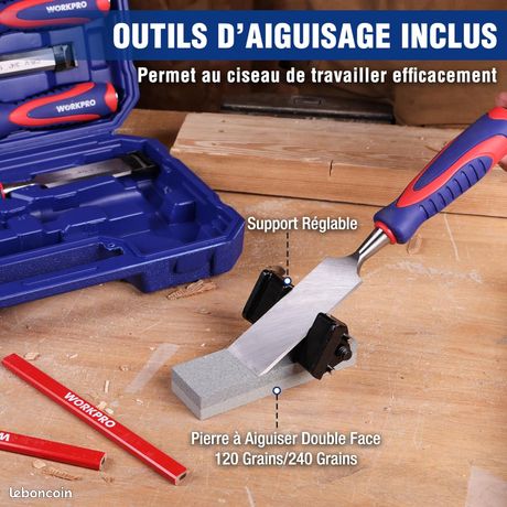 EN STOCK : Kit de ciseaux à bois 10 pièces, Ultrixe, Jeu de 10 ciseaux à bois avec guide d'affûtage, pierre à aiguiser et étui de rangement pour le travail... Coffret Pratique : Ce set comprend un coffret qui permet de ranger et d’organiser facilement les ciseaux, chaque lame étant protégée pour préserver sa netteté. Ce Que Vous Obtenez : Cet ensemble de ciseaux à bois comprend 6 ciseaux (6/13/19/25/32/38 mm), 2 crayons de menuisier, pierre à aiguiser et guide d’affûtage, idéal pour menuiserie, bricolage, sculpture et projets DIY Jeu Ciseaux Menuiserie Affûtage WORKPRO Jeu De 10 Ciseaux à Bois 6/13/19/25/32/38 Mm Avec Ciseaux à Bois Professionnels Poignée Ergonomique : Ces ciseaux à bois possèdent des manches en PP et TPR assurant confort, prise antidérapante et absorption des chocs, avec une extrémité renforcée nickelée permettant de frapper en toute sécurité avec marteau ou maillet GUIDE D'AFFÛTAGE GABARIT D'affûtage Ciseaux à Bois Gabarit Pour L... Tranchant & Durable : Les ciseaux à bois professionnels WORKPRO sont fabriqués en acier Cr-V de haute qualité avec un biseau de 28° pour un affûtage précis et durable, offrant des coupes nettes et fiables pour vos projets de menuiserie et de sculpture COFFRET DE 10 CISEAUX A BOIS PEUGEOT FRÈRES. + 6 petites limes EUR 80