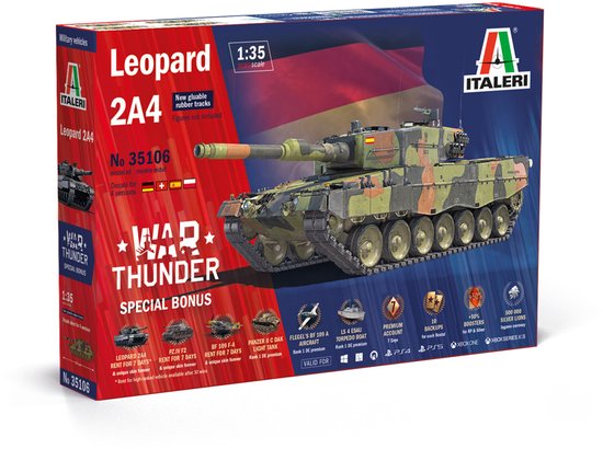 Pour des références sur les couleurs suggérées, veuillez consulter les images des profils ou visitez le site Italeri. Border MODEL - Maquette Char Leopard 2a6 ukraine |border Model|bt-031| 1:35 Le Leopard 2 a également obtenu un bon succès commercial dans de nombreux pays tels que la Hollande, la Turquie, l'Autriche, la Grèce et bien d'autres. Maquette Char Leopard 2 A4 Italeri 35106 Leopard 2 A4 - War Thunder, Kit De Montage En Kits De Modélisme Notice de montage en couleur Colle et couleurs non incluses. Longueur modèle monté 24,1 cm. Les meilleures offres pour Italeri 35106 Leopard 2 A4 War Thunder Kit De Modélisme En Plastique 1:35 NEUF sont sur Comparez les prix et les spécificités des produits neufs et d 'occasion Pleins d 'articles en livraison gratuite Colle et couleurs non incluses, vous permettent de choisir librement les peintures pour une personnalisation fidèle à la réalité historique. Depuis les premières versions, le Leopard 2 a été constamment amélioré et mis à jour. Ce kit détaillé à l’échelle 1/35 permet de recréer fidèlement ce char emblématique. Il inclut également des bonus exclusifs pour le jeu en ligne War Thunder, idéal pour les passionnés de modélisme et de combats blindés virtuels Entré en service entre la fin des années 70 et le début des années 80, le Léopard 2 est considéré comme l'un des meilleurs moyens blindés du monde. Boîte War Thunder (vidéo game) comprend des codes de bonus Nouveaux décals. Parmi les versions les plus répandues, l'A4 se caractérise par l'adoption de systèmes de tir évolués et pour le blindage actualisé avec des matériaux modernes capables de garantir le plus haut niveau de protection. Modèle en plastique à assembler., Fabriqué en Italie. Comprend des super autocollants pour 5 versions, offrant des options de personnalisation avec des marquages réalistes de l'Allemagne moderne