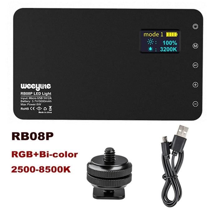 Instarter Lampe Vidéo LED 10 W RGB Éclairage aimantée Lumière 【Contrôle intelligent de l'application】Téléchargez l'application WeeylitePro sur votre appareil mobile iOS ou Android, puis utilisez-la pour contrôler sans fil la lampe vidéo RB-V12 RVB et changer de mode de scène avec une utilisation facile. Photo Vidéo Selfie VLTROX Lampe De Caméra Rétro 12X RVB, Lampe Vidéo LED RVB Rechargeable 22 Wh Avec Contrôle Par Application/CRI 95+/26 Modes De Scène/2500 K-8500 K/Panneau D'éclairage De Photographie Portable Flash Appareil Photo La conception unique de la coque translucide ajoute un élément élégant et de haute technologie et une sensation esthétique futuriste à la photographie. DES MILLIONS D'OPTIONS DE COULEURS : Ce panneau lumineux LED RVB de 8W adopte 72 LED bicolores et 36 LED RVB pour créer une luminance maximale de 650 lux (à 0,5 m). L'éclairage RVB à 360° est doté d'un IRC élevé et d'un indice TLCI de 97 , ce qui permet un rendu précis des couleurs Lampe vidéo LED RVB intelligente en couleur : la lampe vidéo LED RB-V12 est la première lumière LED magnétique colorée lancée par VILTROX qui prend en charge le contrôle intelligent par application, dispose de 108 perles LED à rendu des couleurs élevé, IRC 97 , puissance de 12 W et la luminosité peut atteindre 810 lux 5600 K @ 0,7 m... Il dispose d'un câble USB Type-C pour alimenter ou charger la lumière, adapté à la prise de vue en intérieur ou en extérieur, et ne vous inquiétez jamais de manquer d'énergie. En outre, il prend en charge la télécommande et le contrôle du corps de la lumière, même combiné avec d'autres lumières Weeylite pour obtenir votre couleur idéale et vos effets spéciaux. elle peut créer diverses atmosphères, enrichir la créativité des scènes de films. 1 26 effets lumineux 2 Lumière couleur RVB 3 Température de couleur 4 Réglage de la luminosité 5 IRC élevé 97+ 【Batterie rechargeable intégrée de 4000 mAh】La lampe de caméra RVB est une batterie Li-ion rechargeable intégrée de 4000 mAh, charge complètement la batterie en 1,5 heure (12 V/2 A), prend en charge la charge rapide USB PD/QC et le temps d'éclairage continu est jusqu'à 70 minutes après une charge complète. VILTROX RB-V12 Lampe Vidéo LED RVB Magnétique avec Contrôle par Application/Supports pour Griffe Froide/CRI 97+/2500K-8500K/4000mAh/26 Scènes Lumineuses pour la Photographie, Le Vlogging, l'éclairage Selfie