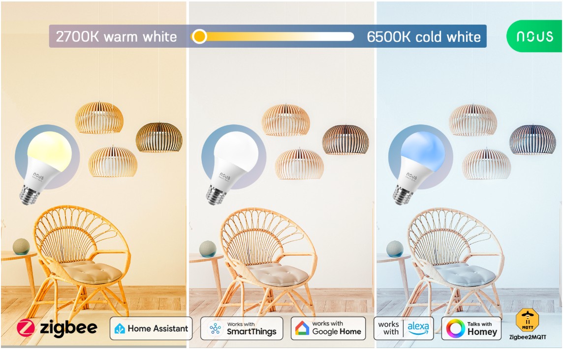 Profitez de vos scénarios de vies intelligents et gagnez en confort de vie au quotidien. Gérez votre ampoule LED avec votre Smartphone même à distance grâce à l'application gratuite Smart Life disponible pour Android et iPhone. En remplacement ou en complément de vos appareils existants, profitez du confort de la maison connectée et de ses scènes intelligentes à tout moment grâce à notre gamme d'objets connectés ZenGO ! Dites par exemple Alexa, baisse la luminosité du salon à 50% pour créer une ambiance tamisée en un instant. Quelles sont les meilleures ampoules connectées E27 ? Janvier Créez votre propre ambiance lumineuse en fonction de votre humeur grâce au grand nombre de réglages disponibles. L'ampoule connectée LED WIFI vous permet de créer une ambiance lumineuse selon vos envies : éclairage tamisé, atmosphère colorée, elle peut même vous accompagner au rythme de la musique. Fiche technique • Type : E27 • Puissance / Flux lumineux : 14W / 1 500 lumens (en blanc) • Températures de couleurs : réglable de 2700K à 6500K • Connectivité : Wi-Fi 2.4 GHz • Compatibilité : Applications Smart Life, TUYA, Google Home, Alexa, Home Assistant et SmartThings • Alimentation : 200~240V AC • Classe énergétique : F CONTÔLE A DISTANCE VIA SMARTPHONE - Allumez/éteignez vos appareils où que vous soyez grâce à l'application gratuite iOS/Android. Description du produit Une idée lumineuse pour mettre l'ambiance facilement !, Créez des groupes d'ampoules (salon, cuisine, etc., ., ., ) pour contrôler plusieurs ampoules connectées facilement, d'un seul clic. Ampoule Connectée WiFi Matter , Ampoule Led E27 Multicolore 2500K-6500K Ampoule Connectée E27 Une idée lumineuse pour mettre l'ambiance facilement !L'ampoule connectée LED WIFI vous permet de créer une ambiance lumineuse selon vos envies : éclairage tamisé, atmosphère colorée, elle peut même vous accompagner au rythme de la musique.Simple et rapide à installer, vous pourrez contrôlez facilement une (ou plusieurs) ampoule(s) connecté(s) grâce à l'application gratuite Smart... LUMINOSITÉ ET TEMPÉRATURE DE COULEURS RÉGLABLES - Réglez la température de couleur (blanc chaud à blanc froid) et la luminosité (de 0 à 100%) comme vous le souhaitez.