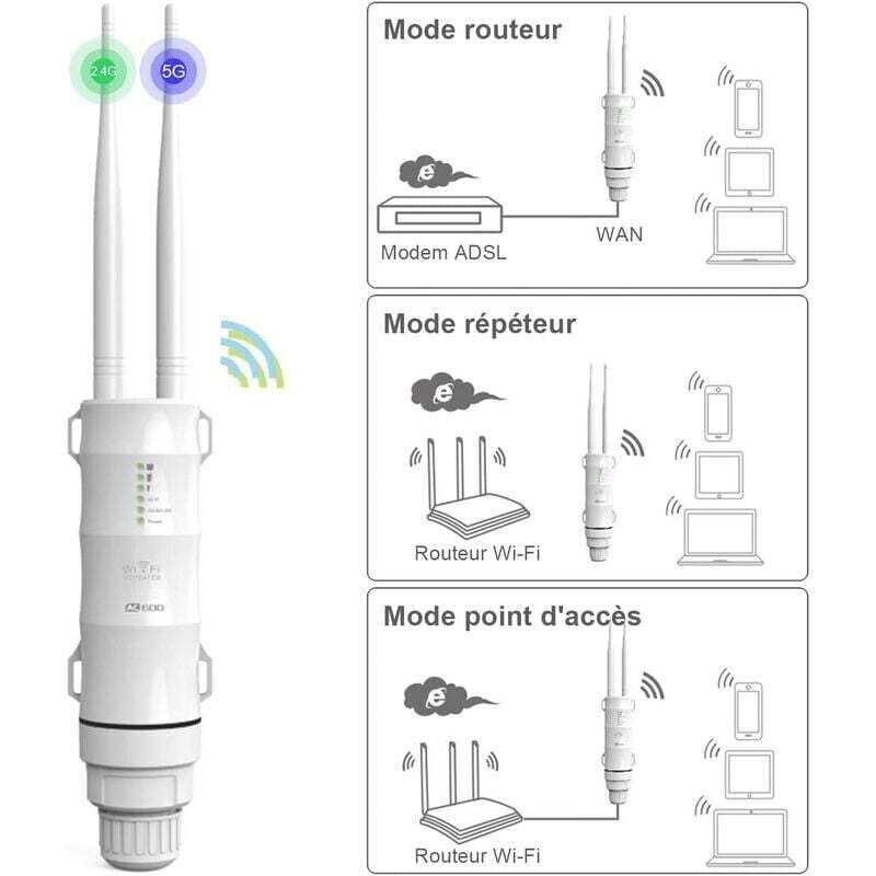 Achetez Répéteur WiFi, amplificateur de signal Wi-Fi, 6 antennes, 2 ports LAN, couverture jusqu'à 10 000 mètres carrés, convient pour les bureaux et les... ⚡ Quick & Easy Setup in Seconds – Just press the WPS button to connect instantly. ⚡ Universal Compatibility – Works seamlessly with all WiFi routers, modems, and mesh systems, supporting iOS, Android, smart TVs, laptops, gaming consoles, and more. Ports LAN Répéteur Répéteur Wifi Puissant 300Mbps Amplificateur Wifi Puissant 2.4Ghz, Wifi Repeteur Wifi Exterieur Ft – Eliminate WiFi dead zones and enjoy stable, reliable signals in every corner of your home, including bedrooms, garages, basements, and outdoor areas. Répéteur WiFi Plug and Play : installation en 2 minutes, manuel d'installation complet et clair (multilingue), pas besoin de procédure compliquée, branchez... ⚡ 1200Mbps singal Band WiFi Booster – Experience ultra-fast wireless speeds with 2., 4GHz (300Mbps) , ideal for 4K streaming, HD video calls, and online gaming without lag. Répéteur Wifi Ac1200,Repeteur Wifi Puissant Double Bande 5Ghz Et 2,4Ghz