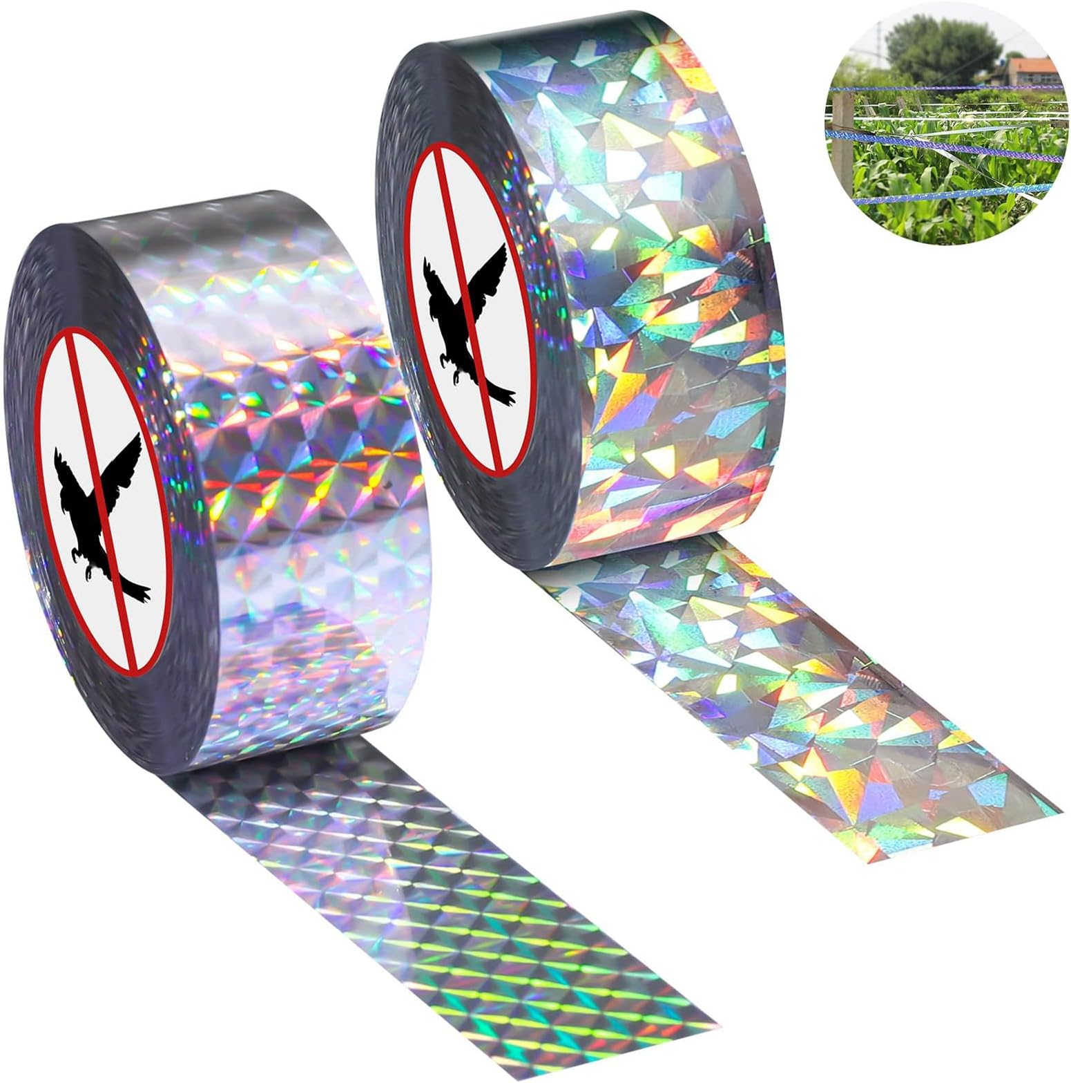 Protection Cultures Jardin 3 Stück 80m X 2.4cm Vogelabwehr Vogelband, Vogelabwehr Band Abschreckung Doppelseitiges Effaroucheur Pigeons Vogelabwehrband Reflektierend,2 Stück Vogelschreck Band, Vogelband Zur TINAGI Reflektierendes Vogelabwehrband, Abwehr von Vögeln für den Garten,Vogelabwehr Vogelband... Il résiste à la pluie, au soleil intense et au vent fort sans se casser, garantissant une longue durée de vie même dans des conditions climatiques extrêmes 【Résistance et flexibilité】 : avec une capacité de charge incroyable (jusqu'à 30 kg de tension) et une grande élasticité (elle s'étire sur plus d'un tiers de sa longueur), elle évite les ruptures lors de l'installation. Sa conception renforcée résiste aux tiraillements accidentels et aux vents violents, restant intacte saison après saison Les reflets brillants et les mouvements effrayants éloignent les oiseaux sans leur faire de mal, protégeant ainsi vos cultures fruitières et vos plantes 【Installation facile et polyvalence】 : Léger et facile à couper, il s'adapte à tous les espaces. Utilisez-le sur les arbres fruitiers, les vignes, les terrasses ou les cultures agricoles. Il suffit de l'accrocher à des branches ou à des poteaux et de laisser le vent et la lumière faire leur travail, créant un effet visuel et sonore qui effraie les oiseaux Efficacité prouvée] : ce ruban réfléchissant anti-oiseaux utilise un motif unique de fleurs et de carreaux avec effet laser pour effrayer les oiseaux...