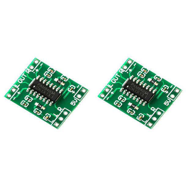 PAM8403 Módulo amplificador audio estéreo 2 canales 2.5V-5.5V 2x3W Ce super petit amplificateur est étonnamment puissant, capable de fournir jusqu'à 3 watts à 2 haut-parleurs avec une impédance de 4 à 8 ohms. Ce module contient un contrôleur de classe PAM8403 D, qui peut être alimenté avec une tension comprise entre 2 V et 5,5 V. Avec le potentiomètre intégré... Ampli Numérique 3W+3W Mdulo Pam8403 De 2 X 3 W Clase D Mini Amplificador De Potenc | Envío Gratis Ampli Numérique Mini Pour Haut-parleurs DIY Contenu : 5 modules d'amplificateur PAM8403 5 V. Petit amplificateur de puissance numérique, qualité sonore haute définition qui met en évidence les avantages des puces numériques. Módulo Pam8403 De 2 X 3 W Clase D Mini De Potencia Digital | Meses sin... La carte d'amplificateur PAM8403 5 V peut être alimentée par une alimentation USB ou des piles AA. Puissance de sortie maximale : 3 W x 2 (5 V 4). Contenu de l'emballage : 5 cartes de module amplificateur audio PAM8403 5 V. Réglage facile et fluide du volume et contrôle de l'interrupteur d'alimentation.