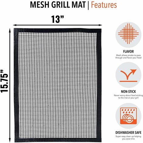 4 Pcs Anti-Adhésif Mesh Grill Sac Réutilisable BBQ Grill Mat Légumes Viande Cuisson Poche... Coupable: facile à couper à la taille et à la forme souhaitées Large application: parfait pour tout gril, y compris le gaz, le charbon de bois, le propane, les barbecues électriques, les foyers, le four ou la fumée Tapis De Cuisson Pour Barbecue 4 Pièces Grille Barbecue, Anti-Adhésif Tapis Barbecue, 40 X 30 Cm, Réutilisables, Pour Barbecues Au Gaz, Au Charbon De Bois Et Électriques Accessoire Barbecue Gaz Charbon Résistant à la chaleur: résistant à la chaleur jusqu'à 260 ℃ (500 ℉), ne brûle pas ni ne rétrécit Tapis de Cuisson Barbecue BBQ Set 5pcs BBQ Grill Mat Tapis Barbecue Anti Adhesif Reutilisables... Non collant: plus besoin de brosser les HUILES, rendez vos aliments plus savoureux et c'est bon pour la santé de votre famille 4Pcs Réutilisable Non-Bâton Surface Barbecue Grill Four Cuisson