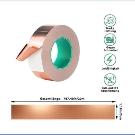 Cuivre Limace Mitening Ruban De Cuivre 30m X 50mm, Premium Feuille De Cuivre Bande Ruban Adhés Ruban Conducteur Double Face 50mm Ruban en cuivre répulsif anti-limaces, 50mm x 20m, protection Acheter Bande collante scotch contre escargots Cuivre 400cm / 2,8cm? Commandez en ligne au... Et il est facile à découper en différentes tailles et formes, adapté aux téléphones mobiles, ordinateurs, moniteurs LCD et autres produits électroniques nécessitant un blindage électromagnétique. Conducteur double face Le cuivre du ruban de cuivre lui-même est un excellent matériau conducteur et résiste à la chaleur, à l'humidité, aux produits chimiques, à la corrosion, à l'oxydation et à la décoloration. Spécifications】 : 50 mm x 20 m, 1 rouleau de ruban de protection en feuille de cuivre, ruban d'escargot. Application polyvalente Les escargots en ruban de cuivre ont un pouvoir adhésif très élevé et peuvent être facilement collés sur diverses surfaces. 【Conducteur double face】 : le cuivre du ruban de cuivre lui-même est un excellent matériau conducteur et résiste à la chaleur, à l'humidité, aux produits chimiques, à la corrosion, à l'oxydation et à la décoloration. 【Blindage EMI et RF】 : protégez vos appareils des interférences électromagnétiques et radiofréquences. Und es ist leicht in verschiedene Größen und Formen zu schneiden, geeignet für Handys, Computer, LCD-Monitore und andere elektronische Produkte, die elektromagnetische Abschirmung benötigen. Matériau de base : cuivre · Plage de résistance à la température : -10 ℃ --- 120 ℃ · Couleur jaune · Taille : largeur 50 MM* épaisseur 0,05 MM* longueur 20 mètres...