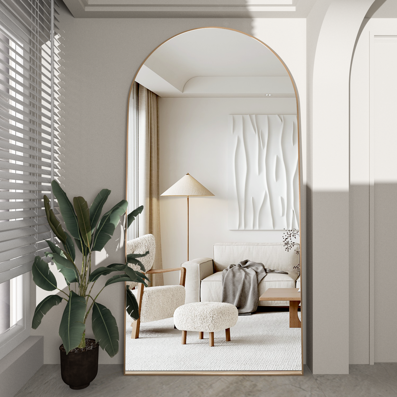 Idéal comme cadeau pour Noël, pendaisons de crémaillère, anniversaires ou autres occasions. Miroir Sur Pied Chambre CUSTCH Miroir Complet Arqué, 162 X 53 Cm, Grand Miroir De Sol Pleine Longueur, Miroir Sur Pied Bombé, Suspendu, Elliptique, Pour Chambre Salon Entree, Noir Grand Miroir Mural Même en cas de casse, le verre empêche les éclats de se disperser, garantissant ainsi la sécurité. Ce miroir sur pied est idéal pour la chambre, le salon, le dressing, le couloir ou encore les boutiques de mode. Son design moderne s’intègre parfaitement à différents styles de décoration intérieure et ajoute une touche d’élégance à votre maison Il sert à la fois de miroir pleine longueur pratique et d’élément décoratif qui illumine l’espace. 【Utilisation polyvalente】 Ce miroir peut être utilisé de trois manières : en miroir sur pied grâce au support pliant en U, appuyé en toute sécurité contre un mur, ou fixé au mur à l’aide des deux crochets renforcés à l’arrière. Grand iroir pleine longueur 165 x 60 c, à poser ou à suspendre au ur... Idéal pour le salon, la chambre, la salle de sport et plus encore. 【Cadre renforcé en alliage d’aluminium】 Conçu avec un cadre en alliage d’aluminium de 3,5 cm d’épaisseur et 1 cm de largeur, ce design amélioré offre une stabilité renforcée et une meilleure protection de la surface du miroir, réduisant ainsi les risques de fissure ou de déformation. Les crochets améliorés assurent un maintien solide pour une fixation murale stable et sécurisée. 165x60 cm Miroir sur Pied, SOMUBI, Miroir Mural, Miroir en pied avec cadre en alliage d'aluminium,pour Vestiaire et Chambre,Doré - Maison 【Surface miroir HD】 Le verre trempé dispose d’une surface miroir haute définition, offrant des images nettes et réalistes sans déformation ni altération des couleurs. Un manuel détaillé est inclus pour une utilisation facile.