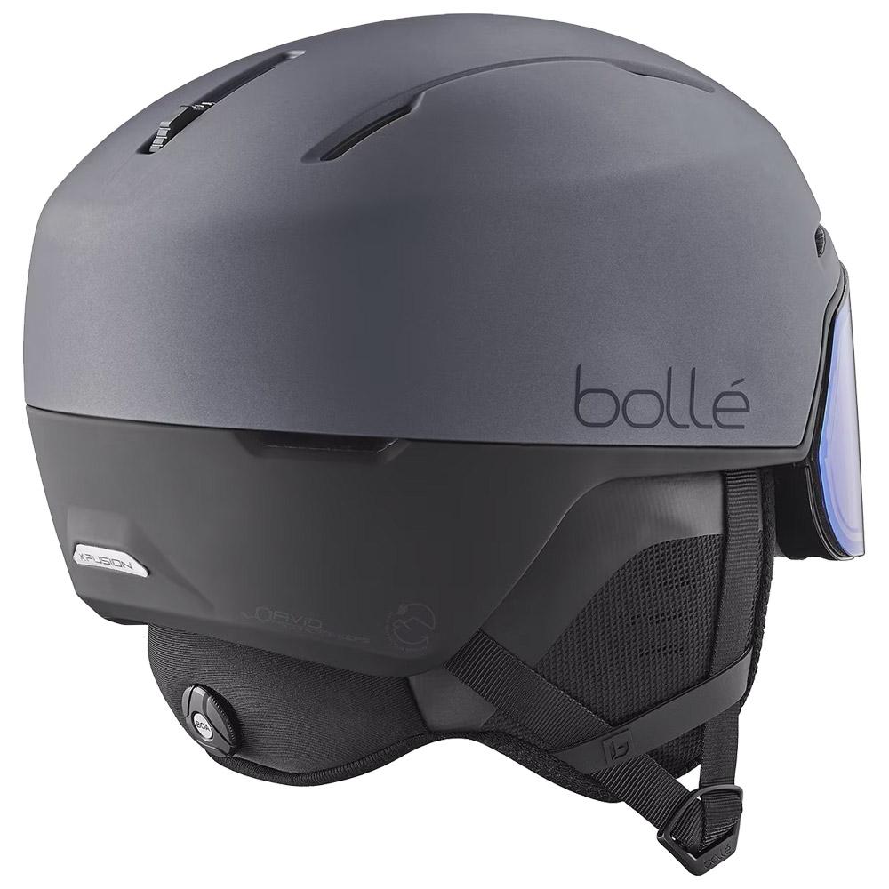 Casque De Ski X-FUSION Tungsten Black Matte - Photochromic Gold Cat 1 To 3 [Protection : AViD Progressive EPS] Protection, poid réduit et ventilation optimisé Une structure EPS qui offre un amortissement progressif, un poids réduit et un flux d'air optimisé. Ajustement BOA 360 X-FUSION MIPS Casques De Ski | Bollé Bolle X-Fusion Ajustement BOA Ce casque fait partie intégrante de notre approche d'éco-conception, la visière, les pièces plastiques et tissus étant fabriqués à base de matières recyclées. Découvrez le casque de ski X-FUSION de Bollé : design innovant, vision panoramique, confort optimal et éco-conception. Idéal pour tous les skieurs, même avec lunettes Casque de Ski Bollé - Atmos Pure White Matte - Masques de ski Bollé... Le produit se distingue par sa légèreté et son excellente ventilation. [Système d'ajustement : Fit System BOA 360°] Meilleurs système de fit et de verrouillage Le système d'ajustement breveté BOA qui offre l'ajustement le plus précis du marché. [Charactéristiques supplémentaires : Visière photochromique Cat. Ce modèle offre une vision panoramique en toutes conditions météorologiques, y compris pour les porteurs de lunettes de vue. La boucle magnétique Fidlock offre une fixation de haute qualité, sûre et facile à utiliser. Véritable révolution pour un casque à visière, le X-FUSION bouscule les codes avec une intégration et une harmonie complète de la visière et du casque.