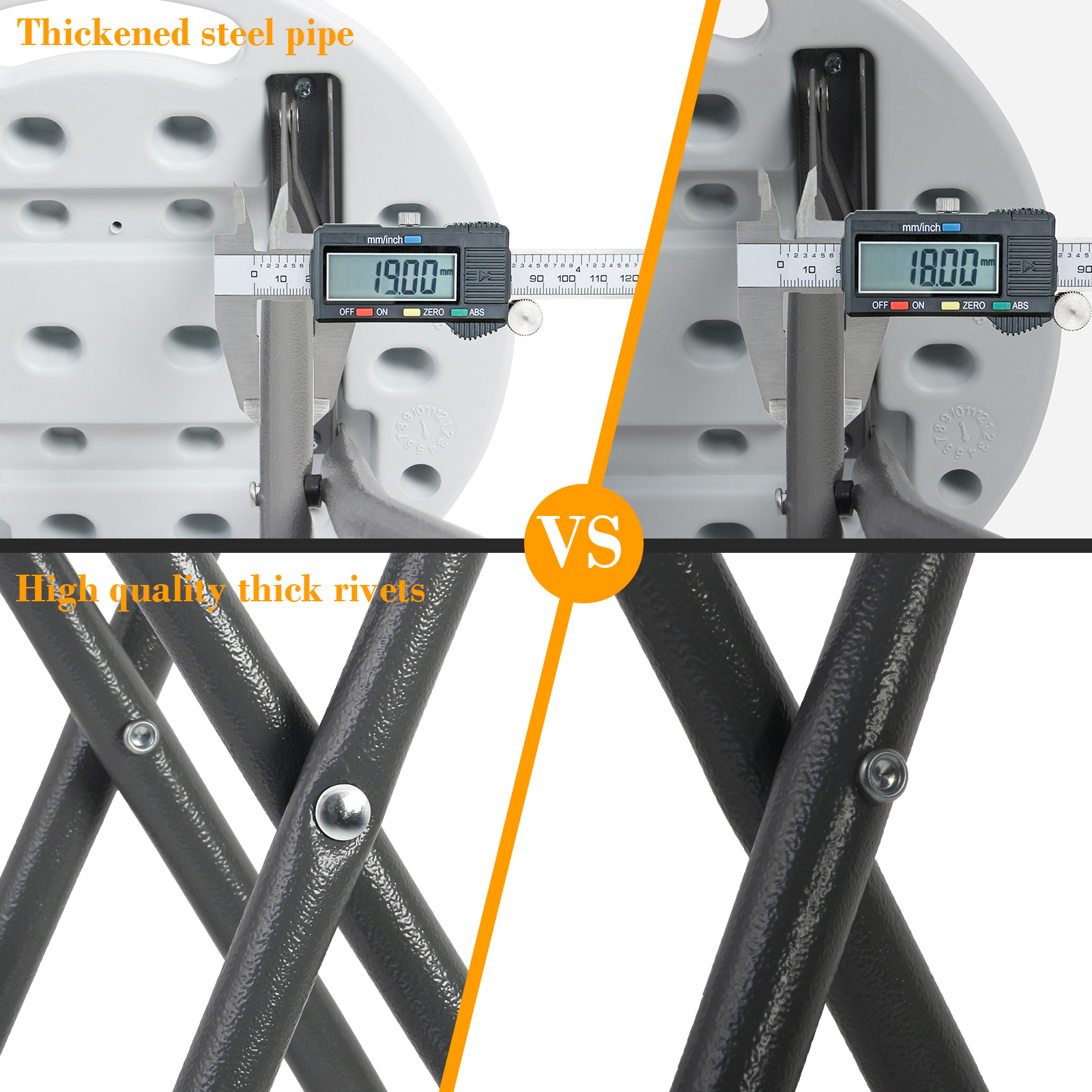 Le lot de quatre tabourets pliants d'une hauteur de 46cm a été spécialement conçu pour accompagner toutes vos activités de plein air : pique nique, camping, pêche etc... Le système de pliage rapide permet un gain de place considérable lors du transport ou du rangement. Caractéristiques techniques Quantité : 4 tabourets ✅ POLYVALENT : Utilisable en intérieur comme en extérieur, parfait pour jardins, terrasses, balcons ou bars éphémères. Hauteur d'assise : 46 cm Le lot de quatre tabourets pliants d'une hauteur de 46cm a été spécialement conçu pour accompagner toutes vos activités de plein air : pique nique, camping, pêche etc., ., ., Ils peuvent également servir comme tabourets d'appoint lors d'un repas pris à l'intérieur ou à l'extérieur sur la terrasse ou le balcon. Idéal pour toutes vos réceptions et moments conviviaux. 10x Tabourets Pliants Bas XL Gris-blanc - Tabouret Structure : acier avec pieds caoutchoutés, Charge maximale : 150 kg Ils sont adaptés à un usage extérieur et se nettoient facilement avec un chiffon à l'eau savonneuse après chaque utilisation. Siège Pliable Transport Poignée Rangement Tabourets Pliants X4 - Ht 46Cm - Tabouret Pliable De Jardin Tabouret Pliant Noir 46cm Charge 150kg Pesant seulement 2kg par unité, les tabourets sont très simples à manipuler. Avis de l'utilisateur Le lot de quatre tabourets pliables est très pratique pour des sorties camping et pique-niques. Les pieds sont caoutchoutés pour ne pas rayer le sol. Lot de 4 tabourets noirs pliants ultra-compacts Assise confortable en résine résistante - 30mm d'épaisseur Hauteur 46cm Structure en acier robuste acier avec pieds caoutchoutés Capacité de charge jusqu'à 150 kg Poids léger : seulement 2 kg par tabouret Facile à plier, à transporter et à ranger Nettoyage rapide Plus d'infos Fiche... Poids par tabouret : 2 kg (4kg au total), Coloris : noir Le fait qu'ils prennent très peu de place une fois pliés est un vrai plus. Le siège résine se nettoie aisément avec un chiffon humide et de l'eau savonneuse. Fonction : pliable, portable, peu encombrant Ils sont très légers et très faciles à transporter par leur poignée. ✅ FACILE D'ENTRETIEN : Montage et rangement rapides en quelques mouvements.