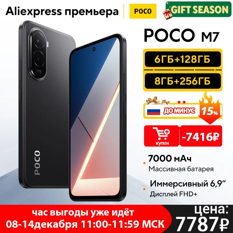 Processeur Snapdragon 685 puissant : le POCO M7 est basé sur un processus efficace de 6 nm et offre des performances stables avec une efficacité améliorée et une consommation d'énergie réduite. Double Caméra AI 50MP Avec NFC XIAOMI POCO M7, Smartphone 6+128 Go, écran FHD+ 144 Hz De 6,9 Pouces, Snapdragon 685, Double Caméra AI 50 MP, 7000 MAh, Bleu, Chargeur Non Inclus (Version Française + 2 Ans De Garantie Chargeur Xiaomi 33w POCO M7 Smartphone,Snapdragon 685,7000mAh Battery Immersive 6.9 Système de caméra double AI 50 MP : avec l'appareil photo principal de 50 MP, vous pouvez facilement enregistrer des photos avec des couleurs vives, une clarté et une dynamique époustouflantes Batterie géante de 7000 mAh : la plus grande batterie POCO pour smartphone à ce jour pour le marché mondial offre une autonomie exceptionnellement longue et sans précédent. POCO M7 4G 6+128 Go Noir avec NFC sans chargeur