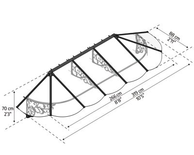 Marquise porte d'entrée transparente AQUILA™ 4500 - Palram - Canopia Canopia Marquise Porte Canopia By Palram - Auvent Pour Porte D'entrée Sophia XL 3000-140 X 286 Cm - Gris Et Blanc Opale - Protection Solaire - Auvent De Porte D'entrée Avec Gouttière Auvent Palram Lily XL Avec des profilés en aluminium résistants à la rouille, des supports en acier galvanisé à revêtement en poudre, des détails ornés et des panneaux translucides, l'auvent de la porte ne nécessite pratiquement aucun entretien Bloque jusqu'à 100 % des rayons UV nocifs pour protéger vos fenêtres et vos portes des dommages du soleil Bloque jusqu'à 100 % des rayons UV nocifs pour protéger vos fenêtres et vos portes des dommages du soleil; Garde votre entrée propre et votre porte protégée... Structure galvanisée antirouille, spécialement conçue pour résister aux conditions météorologiques difficiles. Garde votre entrée propre et votre porte protégée de la pluie.