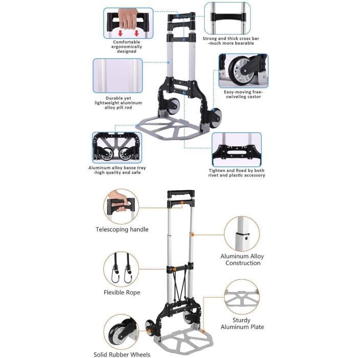 XMTECH Diable de transport pliable en acier réglable en hauteur 80 kg Ce chariot de transport est léger et durable, pliable, facile à stocker, facile à utiliser, pas de montage nécessaire. Dimensions du plateau de chargement (l x p) : environ 38,5 x 24 cm. Poignée télescopique réglable en hauteur de 67 à 95 cm - Ergonomique et n'abîme pas le dos. Ce diable est très peu encombrant et se replie et se déplie en un rien de temps. Multifonction : ce diable d'escalier est idéal pour toutes les tâches de transport dans le shopping, la maison ou le jardin. Dimensions des roues en plastique : 13 x 2,5 cm. Chariot Pliable Camping Shopping XMTECH Diable Pliable En Aluminium - 80 Kg - Avec Poignée Réglable En Hauteur - Avec Roues - Grande Surface Diable Monte Escalier Diable aluminium pliable 180 kg Dimensions plié (H x l x P) : 67 x 38,5 x 38 cm. Transportez facilement des caisses, valises, aliments, etc. Robuste : toutes les pièces porteuses sont fabriquées en aluminium robuste. Portez vos lourds sacs grâce à ce diable spécialement conçu pour résister. La conception à trois roues vous permet de ne pas vous blesser lorsque vous portez des charges lourdes. La poignée télescopique réglable adopte une conception ergonomique pour éviter les blessures potentielles Caractéristiques techniques : Matériau : acier., ● Charge maximale : env., 80 kg. La surface de chargement mesure 38,5 x 24 cm. Espace merveilleux : surface de rangement pliable – Convient également pour un rangement durable à la maison ou dans la voiture Diable Pliable en Aluminium Chariot de Transport Bande Elastique Réglable 3 Positions Poignée Télescopique Capacité 80kg ; Livraison gratuite vers : 75001 ; Stock... Le poids est de seulement 3 kg. Pratique : faible poids et bonne maniabilité grâce à de grandes roues Le diable pour escaliers se replie de manière compacte et se range dans n'importe quelle garde-manger, abri de jardin et coffre de voiture.
