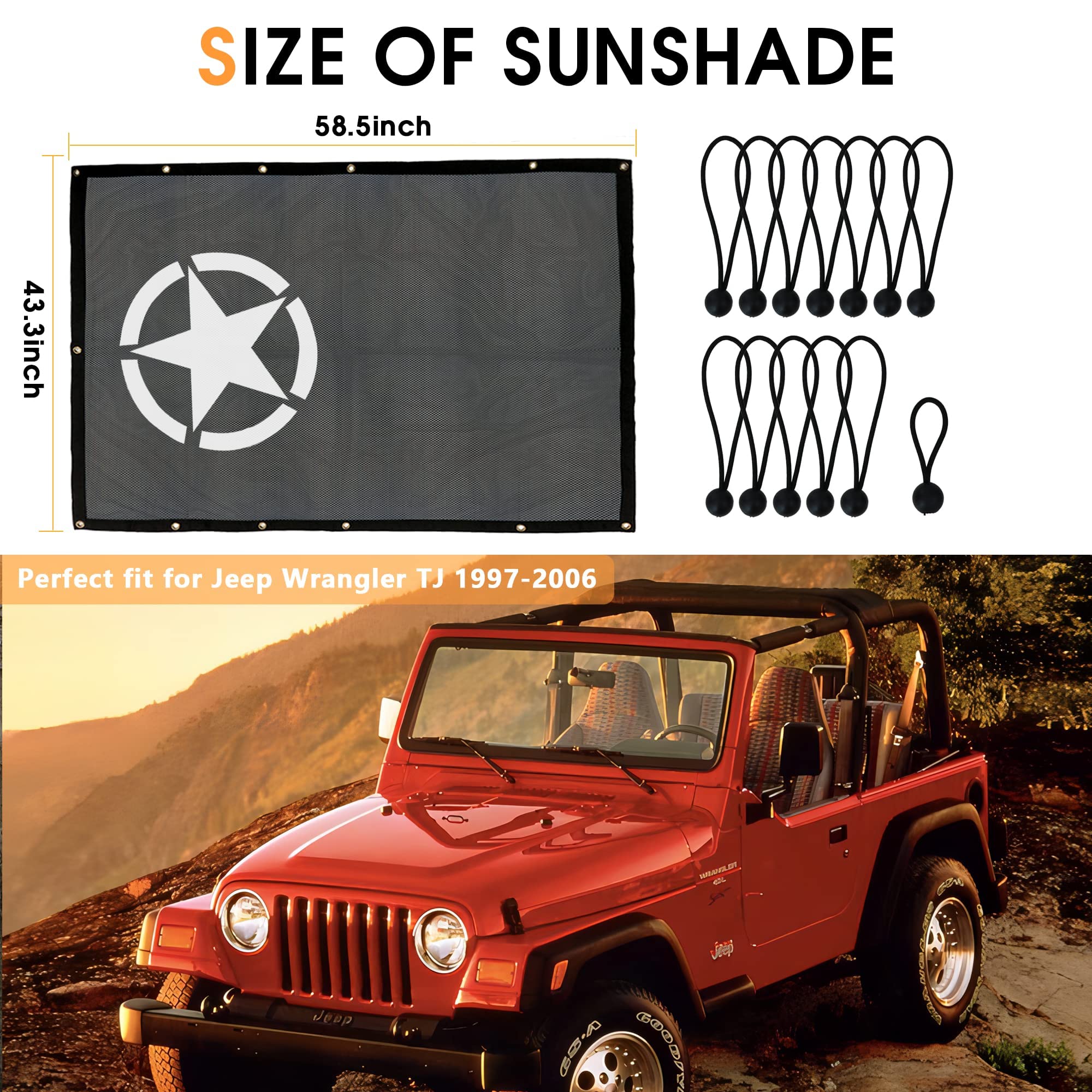 823321 PARE SOLEIL PASSAGER AVEC MIRROIR POUR TRIUMPH SPITFIRE TR4 TR5 TJ SUNSHADE - Exclusivement pour Jeep Wrangler TJ 2 portes 1997 1998 1999 2000 2001 2002 2003 2004 2005 2006 (pas de montage JK JKU JL JLU). Gladiator Sun Shade Jeep Zubehör XYHAOAI Mesh Sunshade Für Jeep Wrangler TJ - Bikini Pare Soleil Jeep Wrangler Fabriqué selon les spécifications d'origine de l'usine pour assurer l'ajustement. TJ SUNSHADE - Exclusivement pour Jeep Wrangler TJ 2 portes 1997 1998 1999 2000 2001 2002 2003 2004 2005 2006 (pas de montage JK JKU JL JLU). PROTECTION - Les pare-soleil TJ offrent une protection contre l'éblouissement et la chaleur, tout en étant suffisamment transparents pour permettre une gamme complète de vision sur la route Extension de Pare-Soleil de Voiture,Junzheng Anti-éblouissement... L'abat-jour TJ résiste aux taches et à la décoloration pour donner à votre TJ un look personnalisé. PROTECTION - Les pare-soleil TJ offrent une protection contre l'éblouissement et la chaleur, tout en étant suffisamment transparents pour permettre une gamme complète de vision sur la route., . Le pare-soleil s'adapte sous les toits rigides et les toits souples TJ, aucun en-tête, outils, quincaillerie n'est requis. Vous protège efficacement du soleil brûlant. CONSTRUCTION ROBUSTE - Le polyester de haute qualité avec des bords à double couture et des œillets métalliques offre une protection durable contre le soleil et l'usure quotidienne. Le tissu de haute qualité ne se déforme pas à haute température.