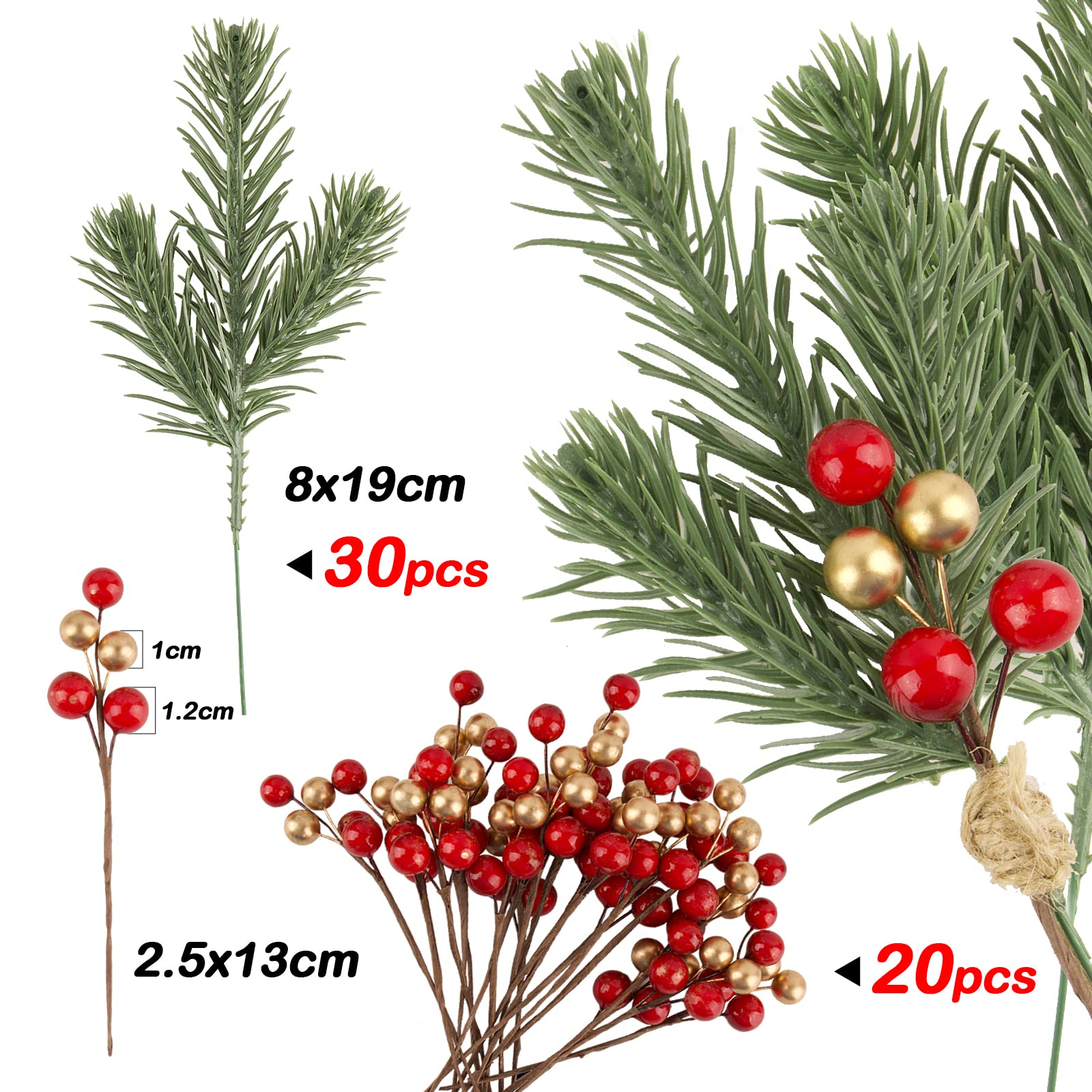 20 Pièces Branches de Sapin Artificielles Naturelles avec Baies Rouges et Pommes de Pin,Petites Branches de Noël Décoratives - Maison Belles et Vives: Les couleurs des fausses branche de sapin artificielle sont vives et réalistes. Lot 50 Branches 8x6 Cm Xbessc 50 Pièces Branche De Sapin Artificiel Plastique Décoration D Décoration Sapin Avec Baies Rouges Il ne se fanera pas et peut être utilisé pendant longtemps. Guirlande de pin artificiel de 66 cm - Guirlande Avec cette élégante branche de pin qui a été finie avec de la couleur dorée, vous pouvez facilement créer de magnifiques décorations de... 5 Orchidées Artificielles Rouges - Le jardin artificiel Un accessoire parfait pour toutes sortes de travaux manuels. Vous pouvez les utiliser à l'intérieur et à l'extérieur pour décorer facilement votre fête de Noël et ajouter une touche naturelle à votre fête de Noël. Utilisez votre imagination pour créer votre propre design unique et amusez-vous avec le bricolage. Quantité suffisante pour répondre à vos besoins d'utilisation et de remplacement. Bricolage Créatif: Les branches sapin artificielles et des baies peuvent être utilisés individuellement ou en combinaison. Contenu de L'emballage: Le paquet comprend 50 branche de sapin artificiel (25 pièces chacune pour 2 styles), la longueur x la largeur est d'environ 8 x 6 cm, 100 aiguilles de baies de Noël rouges.