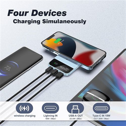 Quels téléphones mobiles disposent de la fonctionnalité MagSafe ? Série iPhone 12-13-14-15., Puis-je charger tout en portant une coque de téléphone portable ? Si la coque du téléphone prend en charge la fonctionnalité MagSafe, vous pouvez le faire. Batterie Externe Magnétique Sans Fil, 10000Mah Power Bank Batterie Mag... Largement utilisé, fonction magnétique compatible avec les séries iPhone 16/15/14/13/12 (les autres modèles n'ont pas de fonction magnétique), sortie sans fil 5W/7,5W/10W pour les téléphones, port de sortie USB C 20W pour charger d'autres appareils. Pour avoir la meilleure expérience de chargement, utilisez uniquement les iPhone séries 12/13/14/15 avec une coque magnétique. Powerbank Portable Fin Pour Iphone 15 16 Xiaomi Batterie Externe Sans Fil | Boutique Batterie Externe Magnétique Iphone Notre batterie externe magnétique sans fil intégrée à une puce magnétique et un puissant module de positionnement de l'anneau d'aspiration, 10 N se fixent fortement au téléphone, s'aligne automatiquement avec le téléphone sans avoir besoin de rechercher spécifiquement des positions d'adsorption. satisfaire la demande Support pliable Support pliable magnétique unique pour une visualisation facile, toujours stable et fiable après une utilisation prolongée. Léger, fin comme 17 mm, facile à mettre dans la poche, de petite taille, facile à utiliser d'une seule main. Banque d'alimentation de chargement sans fil GOWATT, protection intégrée contre les surcharges, les surtensions et les décharges excessives, plus sûre à utiliser. La banque d'alimentation peut être complètement rechargée en 2,5 heures. Puis-je charger un iPhone 11 ou version antérieure ? Oui, mais seuls les iPhone 12 ou supérieurs disposent de la fonctionnalité MagSafe. Remarque : le magnétisme ne s'applique qu'aux séries iPhone 16/15/14/13/12. Chargeur 2 En 1 : Cette batterie magnétique fournit jusqu'à 15W de charge sans fil pour votre appareil, tandis que son port USB-C offre une charge filaire PD 20 W. Chargez simultanément deux appareils avec cette banque d'énergie portable Grâce à la technologie de batterie avancée de GOWATT, cette banque d'alimentation a une capacité de 10 000 mAh en dimension portable, peut fournir plus de 100 % de puissance au téléphone sans ajouter trop de volume et de poids. Service responsable, lorsque vous rencontrez un problème avec la banque d'alimentation magnétique sans fil GOWATT, n'hésitez pas à nous contacter et à fournir une solution satisfaisante. Batterie Externe 5000mah 15w Batterie Externe Magnétique 5000mAh Pour IPhone | Charge Sans Fil 15W | Ultra Mince Et Portable Accessoire Iphone 12-16
