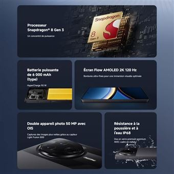 La plus grande capacité de batterie de la série POCO à ce jour. La charge inversée 22,5 W vous offre une efficacité inégalée. Le POCO F7 est doté de deux objectifs portrait conçus pour capturer des émotions riches et des détails complexes, pour des portraits flatteurs et naturels. Une nouvelle étape dans la durée de vie des batteries Batterie massive de 6 500 mAh . Design haut de gamme exquis Découvrez la puissance et la rapidité du nouveau design Edge, avec ses lignes épurées et anguleuses. Autonomie exceptionnelle pour ne jamais manquer d'énergie toute la journée., HyperCharge 90 W. Avec une fréquence d'horloge maximale de 3,21 GHz, ce chipset offre des performances exceptionnelles et est capable de gérer sans effort les tâches les plus exigeantes pour une expérience utilisateur fluide. XIAOI POCO F7 Ultra - Sartphone de 16 512GB, Cáara Triple de 50 P... Caméra frontale 20 Mpx ., Affichez votre confiance. Performances ultra-rapides Le Snapdragon 8s Gen 4 intègre une architecture à gros cœurs basée sur le procédé avancé 4 nm de TSMC. Partagez votre puissante batterie avec vos amis et rechargez rapidement d'autres appareils. Poco F7 Xiaomi 5G 12 Go/512 Go Noir (Black) Double SIM(Chargeur Non Inclus Poco F7 Price Xiaomi Poco F7 Pro 5G Double SIM Noir avec 256Go et 12Go RAM (6932554411695) | Téléphones Mobiles et Smartphones Le POCO F7 offre un effet de profondeur en couches plus naturel, donnant aux sujets une apparence plus tridimensionnelle et donnant à vos photos un aspect soigné et professionnel.
