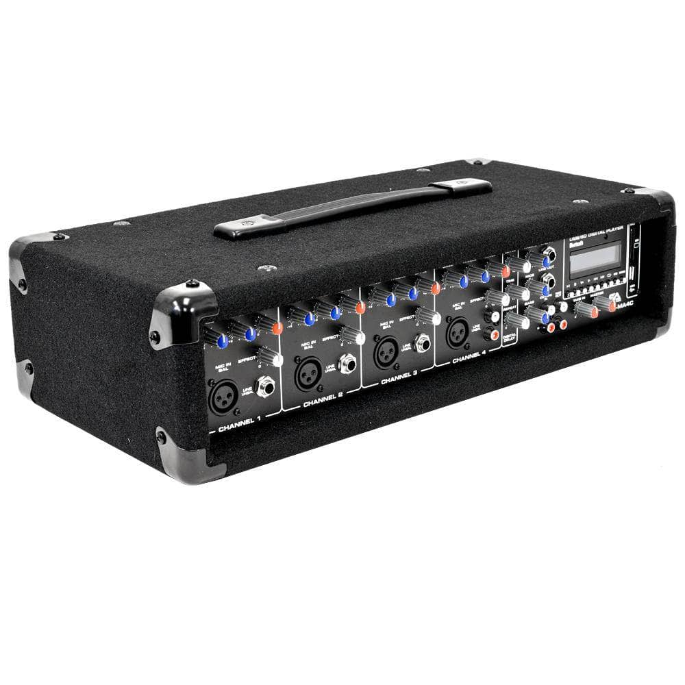 Pronomic PM42-110 StagePower Kit actif Système de chant compact avec mixeur et haut-parleurs 10. Avec une puissance de 200 W (crête), le boîtier PA McGrey fournit suffisamment de volume pour divertir les groupes de personnes les plus grands. Son, Hifi & Casques Mixeur amplifié bluetooth neufs et occasions en... Connexions et régulateurs Le mixeur dispose de 4 canaux. Mixeur amplifié 100W RMS 4 ohms, 4 canaux : entrée Mic/Line/Instrument (XLR/jack), égaliseur 2 bandes, réglages niveau/effet, écho numérique sur master, lecteur MP3, Bluetooth, slot USB/SD. Égaliseur 3 bandes dans le canal du Master (+/- 15 dB). La enceinte passive PA-110 est une boîte polyvalente avec des propriétés sonores équilibrées. 2 poignées latérales, construction solide en bois, surface en feutre et grille métallique, connexions : SPK In/Out et jack 6,35 mm In/Out, dimensions (L x P x H) : 380/240 x 290 x 510 mm, poids : 10,2 kg Ainsi, le Allrounder est idéal pour diverses tâches de sonorisation. Equipos de DJ y espectáculos Mezcladores para DJ y espectáculos table de mixage Lecteur multimédia avec Bluetooth. Le puissant haut-parleur 10 et le tweeter piézoélectrique de 2 assurent une bonne résolution du signal. Kit économique avec Boîtes, trépieds et câbles. Entrée XLR symétrique pour microphones dynamiques - Entrée jack 6,35 mm asymétrique - Régulateur d'effets et de niveau par canal 4 avec entrée ligne au format RCA. Puissance : 50 W (RMS), 100 W (puissance musicale), 200 W (crête). Connexions : Entrée et sortie SPK et jack 6,35 mm - Réponse en fréquence : 70 - 18 000 Hz., Trépied. Dimensions (L x P x H) : 380/240 x 290 x 510 mm. 50 kg, inclus 2 câbles enceintes de 5 m Construction robuste en trépied - Entretoises supplémentaires - Grandes vis de serrage pour la fixation - Goupille de sécurité avec bride en nylon - Diamètre : 35 mm - Extensible d'environ 130-193 cm - Charge maximale : 50 kg. Et enfin, il y a également la télécommande sans fil fournie. Fonctionnalités exceptionnelles : l'appareil à effets intégré fournit un effet de réverbération numérique aux 4 canaux qui peut être ajusté avec les boutons « Level », « Time » et « Repeat » exactement à la situation. 4 canaux : Entrée Mic/Line/Instrument (XLR/jack) Pack Sono YAMAHA - STAGEPAS 400BT - Système De Sonorisation Portable 400w, Avec Mixeur Amplifié 8 Canaux Bluetooth Stagepas400bt Enceinte Amplifiée Haut-parleur de 25 cm, haut-parleur d'aigus de 5 cm. Que vous utilisiez l'entrée XLR symétrique pour les microphones ou la prise jack asymétrique. Seul le canal 4 dispose d'une entrée Line au format RCA. Effet d'écho numérique (Delay) dans le canal du master avec volume. systèmes PA et haut-parleurs, tables de mixage et amplificateurs finaux, microphones, câbles. Petit, puissant et équipé d'un lecteur MP3 pratique. Entrée stéréo pour CD/Tape (RCA, arrière), Line-In/Out (jack, arrière), connexion enceintes : 2x jack 6,3 mm (4 ohms), poignée pratique sur le dessus, boîtier robuste avec coins en plastique, poids : 7,2 kg Vous pouvez contrôler à la fois la tablette et le smartphone et le mixeur. Mélangeur compact avec lecteur MP3 - Puissance : 100 W crête/50 W RMS. - 4 canaux : Entrée Mic/Line/Instrument (XLR/jack) - Égaliseur 2 bandes, réglage de... Chacun des canaux dispose d'un égaliseur à 2 bandes, d'un contrôle du volume et de l'effet. En plus du réglage sonore à 3 bandes pour le signal de bourdonnement, le volume d'entrée de bande et le volume total peuvent être ajustés. Pieds avec structure stable à trois pieds, grosses vis de serrage pour fixation, goupille de sécurité avec bande auto-agrippante, réglable de 130 à 193 cm environ, capacité de charge max.