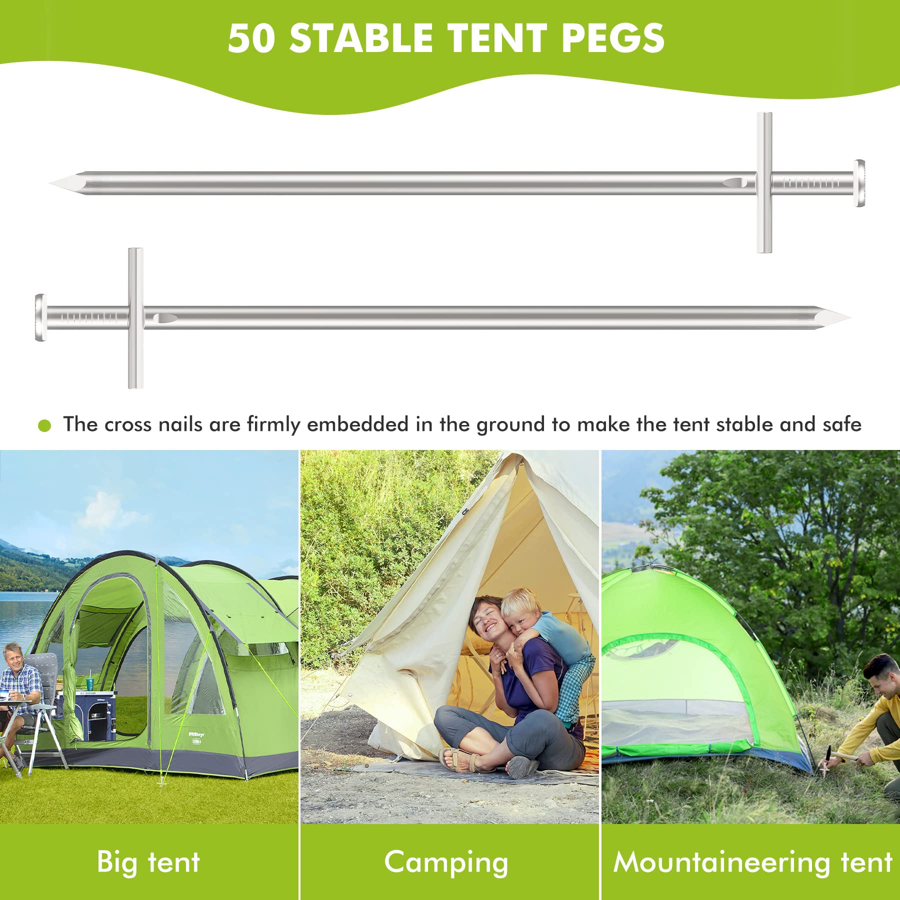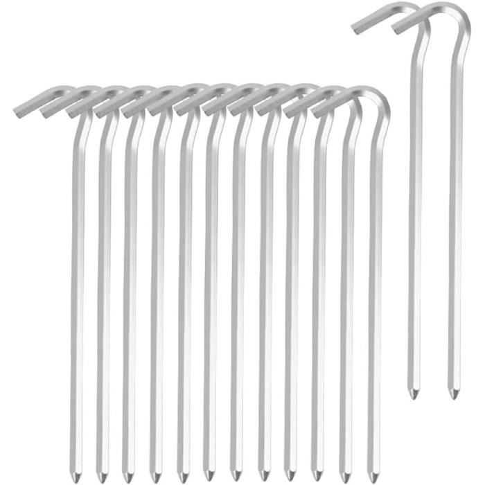 Facile à installer : piquets de tente en alliage d'acier de 22,9 cm, extra hauts pour un ancrage sécurisé. La pointe conique à pointes permet une insertion facile, même dans un sol dur ou de l'argile. Acier galvanisé Ces piquets de tente sont fabriqués en acier galvanisé, avec crochet. Taille parfaite : chaque piquets de tente mesure 23 cm x 3,8 cm. Ils peuvent être utilisés comme piquets de décoration extérieure, piquets de sol, agrafes de jardin, piquets de camping, piquets de cour et piquets de tente ✔️ Durable – Fabriqués en acier galvanisé, ces piquets métalliques disposent d'un crochet incurvé sur le dessus pour plus de fonctionnalité. Tente extra haute de 222,9 cm. Crochets antidérapants Les piquets de tente sont conçus avec des crochets antidérapants sur le dessus, ce qui permet de mieux saisir les cordes. Matériau en acier robuste : fabriqué en acier galvanisé résistant à la rouille, ce piquet de tente est exceptionnellement durable, robuste et résistant à la... ✔️ Multifonction : ces piquets de tente sont polyvalents et adaptés à une variété d'utilisations telles que la sécurisation des tentes, bâches, gonflables, décorations, tonnelles, accessoires de jardin, et plus encore. Peut être inséré à la main, au pied ou au marteau Idéal pour le camping, le sport et bien plus encore. Piquets De Tente Pour Sols Durs Et Caillouteux (Argenté) REGATTA piquets, évier plus profond dans le sol pour une meilleure fixation. Emballés dans un sac en plastique durable de haute qualité avec une carte d'en-tête colorée. Les piquets de tente sont conçus avec des crochets antidérapants sur le dessus qui permettent de mieux saisir les cordes. ✔️ Robuste – Ces piquets de tente robustes sont spécialement conçus avec des crochets antidérapants sur le dessus, offrant une meilleure prise en main pour maintenir les cordes en place en toute sécurité Dimensions de l'article (L x l x H) : 50 x 50 x 50 mm., Style Sports. Taille parfaite : chacun des 20 piquets de tente individuels mesure environ 16,5 cm de long, et mesure 2,5 mm de diamètre, ce qui les rend ultra durables, et un... Ancrage Sol Tonnelle Bâche Jardin YAOBLUESEA Lot De 50 Piquets De Tente En Acier - 23 Cm De Long - Anti-Rouille - Pour Le Camping Et L'extérieur - Pour Sols Durs Et Normaux - Diamètre Lot 50 Piquets Durables Caractéristiques du produit : Matériau métallique Crochet incurvé sur le dessus – pour sécuriser les tentes/auvents/filets de but/filet de bassin. Le design argenté est non seulement pratique, mais aussi résistant à la corrosion et à la rouille, assurant une utilisation durable Caractéristiques : Piquets de tente ronds en acier de qualité supérieure de 22,9 cm.