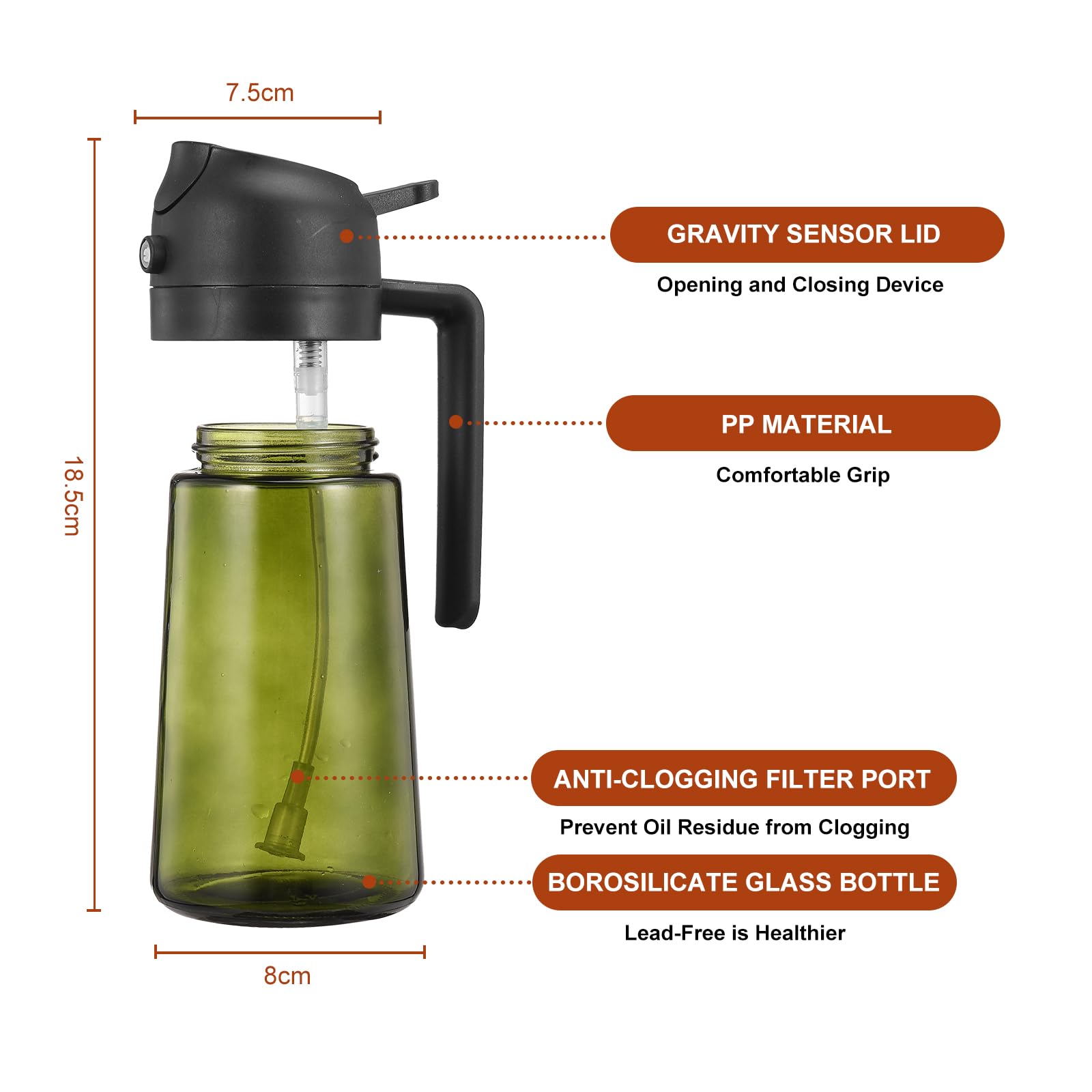 Idéal comme vaporisateur d'huile de cuisson ou d'huile d'olive, il vous permet d'éviter le gaspillage et de préparer des repas sains Présentation du produit 470 ml pulvérisateur d'huile foncé anti-lumière de cuisson 2 en 1 flacon de qualité alimentaire Bouteille en verre vert Protection contre la lumière du soleil : doté d'un revêtement extérieur non toxique et sûr pour empêcher l'exposition à la lumière du soleil, sans revêtement à l'intérieur pour garantir... Matériaux de haute qualité et sûrs : Le vaporisateur d'huile est fabriqué en verre de haute qualité sans BPA, résistant à la chaleur et inodore. Technologie de buse unique : La buse innovante permet un contrôle précis de la quantité d'huile. Spray Huile D'olive YARRAMATE 470 Ml Pulvérisateur D'huile Foncé Anti-lumière De Cuisson 2 En 1 Flacon De Qualité Alimentaire Bouteille En Verre Vert De Pour La Cuisine ( Noir Pulverisateur Huile Cuisine Idéal pour tous ceux qui souhaitent faire attention à leur alimentation Grâce à sa conception astucieuse, vous pouvez alterner entre une fine brume d'huile et un versement précis selon vos besoins. Maîtrise saine de l'huile : Environ 0,14 g d'huile est libéré par pulvérisation, vous permettant ainsi de toujours maîtriser votre consommation de matières grasses. Son matériau robuste garantit durabilité et sécurité maximale au quotidien : profitez d'une cuisson propre et sûre à chaque fois À la main ou au lave-vaisselle, le nettoyage est sans effort. Le produit réel fait foi. Vous pouvez ainsi répartir l'huile ou le vinaigre uniformément. Les Meilleurs Accessoires pour le Air Fryer COSORI 5,5L Une légère pression crée un jet d'huile uniforme, idéal pour parfaire vos salades, grillades ou sautés, tandis qu'une pression lente permet un versement contrôlé, sans surdosage ni gaspillage. Votre vaporisateur d'huile 2 en 1 reste ainsi parfaitement propre et prêt pour la prochaine utilisation Les eilleurs accessoires Air Fryer en 2025 ! L'Avis d'un Chef