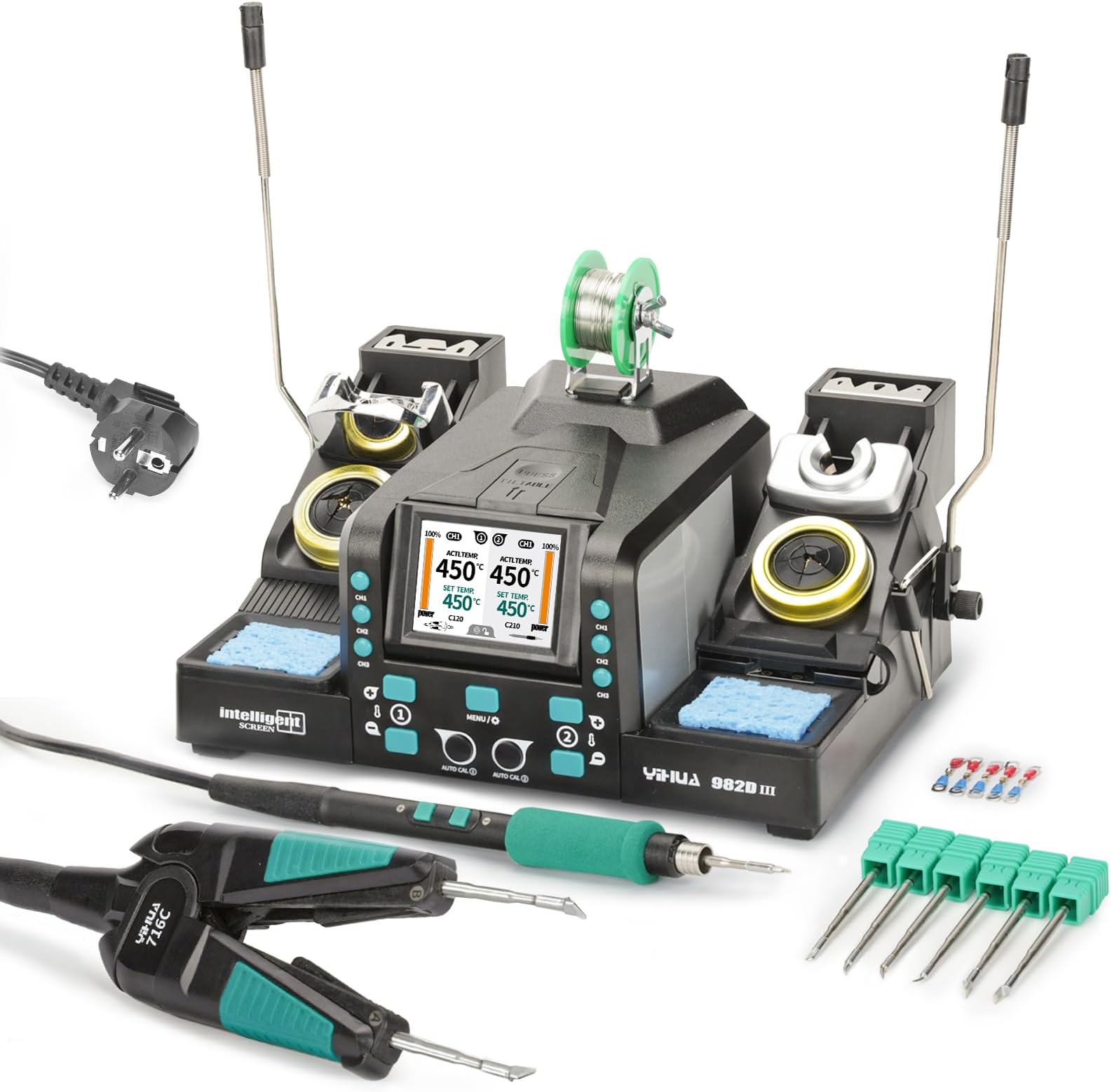 Ce kit de micro-station de soudage comprend une station de soudage de précision de 200 W, qui assure un chauffage rapide grâce à une pointe de soudage à cartouche pratique (compatible C245 et C210). Ses fonctions incluent quatre canaux de température prédéfinis personnalisables, un mode veille, un mode sommeil, la conversion °C/°F et la configuration du buzzer. Vous n'avez donc plus besoin d'un thermomètre externe pour étalonner la température réelle. Emplacement pour calibration automatique de température, Écran couleur YIHUA 982D Station de fer à souder à chauffage rapide C210 ... - Alibaba Le fer à souder de précision fait fondre la soudure en seulement 2 secondes et est protégé contre les décharges électrostatiques. Plateau pour résidus de soudure SALALIS outils de soudure Pointes de fer à souder sans plomb, outils de soudage 2C en forme de... Choisissez YIHUA en Toute Confiance : Conçu pour une tension de 230V AC avec une prise électrique de type F pour l'UE, ce produit est accompagné de notre couverture technique exclusive de 12 mois pour l'UE. Emplacement pour changement/rangement de la pointe La station de soudage de précision est équipée d'un système d'étalonnage automatique de la température avec thermomètre intégré, ce qui permet de gagner du temps lors du changement des pointes (de masse thermique différente). Puissance 200W YIHUA 982D-II Station De Soudage Numérique 2 En 1 Avec Fer à Souder De Station De Soudage Micro Avec une plage de température réglable de 90 à 450°C et un contrôle de température en millisecondes, ce kit de soudage aborde une large gamme de tâches de... L'unité principale comprend un écran couleur inclinable, un support métallique pour fer à souder avec collecteur métallique pour la soudure, un emplacement pour ranger et changer la pointe, un guide-câble et un distributeur de fil à souder.
