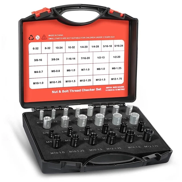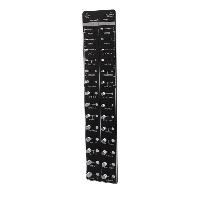 Jauge Pour Boulons écrous YOSOO Vérificateur De Filetage Contrôleur De Filets D'écrous Et De Boulons 44PCS Jauges Jauge De Filetage Portable Testeur Filetage Boulons Jauge Mesure Vis écrous + Règle Séparation - Métrique Outil Mesure Boulon Cette jauge durable couvre le diamètre, les pas et la longueur de la plupart des boulons et vis. Fabriquée en plastique de haute qualité, cette jauge subit un... Sa nature portable et multifonctionnelle en fait une solution pratique qui permet d'économiser de l'espace pour les besoins de filetage. Liste des produits : 1 jauge de filetage. Remarque : En raison des différents paramètres d'éclairage et d'écran, la couleur de l'article peut être légèrement différente de celle de la photo. Cette jauge de filetage est adaptée pour les écrous filetés et le dimensionnement des vis dans les environnements artisanaux domestiques et industriels. Solution à outil unique : conçue pour plus de commodité, cette jauge de filetage intègre une fonctionnalité de double mesure, offrant une gamme de spécifications polyvalente pour optimiser l'efficacité de l'outil et garantir une performance fiable Solution de flux de travail simplifiée : conçu avec des propriétés antidérapantes et une forme ergonomique pour réduire les efforts et optimiser le flux de travail lors d'inspections précises de jauge de filetage Compatibilité de fixation polyvalente : avec une utilité intersectorielle, cette jauge de filetage prend en charge une large gamme de fixations et de tailles, permettant une identification rapide du modèle tout en offrant des performances fiables dans divers environnements opérationnels Découvrez une variété de jauges de filetage métriques et en pouces pour mesurer précisément vos filetages. Commandez sur RS pour une livraison rapide