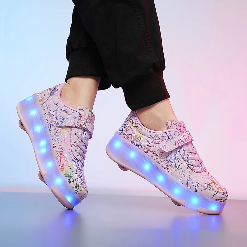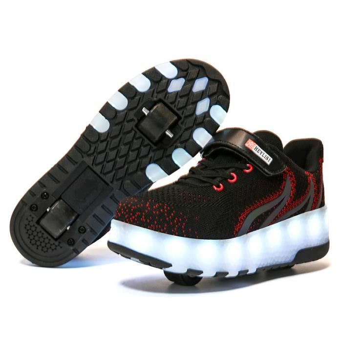 SGoodshoes Baskets Sneakers Lumineuses Clignotante Chaussures De Sport Led Chaussures A Roulettes Avec 16 Colores Enfant Fille Garcon [Matériau de la semelle] Les semelles des chaussures pour enfants à roulettes sont fabriquées en caoutchouc transparent et ont une conception de fond antidérapante, ce améliore l'adhérence des chaussures sur différentes surfaces et les rend plus stables lors de la marche ou du glissement. Chaussures à Roulettes Pour Enfants - YTi - Baskets De Sport De Styliste à Deux Roues - Noir Basket Roulette Il est recommandé de prendre des mesures de sécurité et de porter un casque et des équipements de protection (protège-poignets, genouillères et coudières). Il y a 4 jours · Vous pouvez choisir parmi différentes combinaisons et couleurs de lumières sur la semelle. Batterie rechargeable, câble USB-C inclus. Le cadeau idéal pour les enfants : des chaussures multifonctionnelles à roulettes, faciles à utiliser et qui glissent bien, parfaites pour les cadeaux d'anniversaire et de Noël Nos nouvelles chaussures à roulettes pour enfants disposent de bandes LED et de roues réglables, supportent le chargement USB, 12 modes flash, et tendance. La... 【Multifonctionnel deux en un】Cette paire de chaussures combine les fonctions de chaussures de sport et de patins à roulettes pour répondre aux besoins des enfants dans différents scénarios. [Matériau supérieur] La tige des chaussures pour enfants à roulettes est en cuir, est doux et résistant, s'adapte aux pieds des enfants, est résistant à l'usure et imperméable, et est facile à nettoyer et à entretenir. 【Comme cadeau pour les enfants】La conception idiographic des roues et l'apparence élégante de cette chaussure un bon cadeau pour les enfants. * Assurez-vous que toutes les vis sont serrées devant de patiner. 【Conception de roue flexible】Équipé de deux roues, la roue devant est amovible et la roue arrière est rétractable. Tailles : 29EU, 30EU, 31EU, 32EU, 33EU, 34EU, 35EU, 36EU, 37EU, 38EU, 39EU, 40EULe forfait comprend : 1 * paire de baskets à roulettes pour enfants, 1 * clé, 2 * roues, 2 *couvercles de poulie, 1 * câble de chargeSécurité:* Ne changez pas de patins d’une manière pourrait compromettre la sécurité.