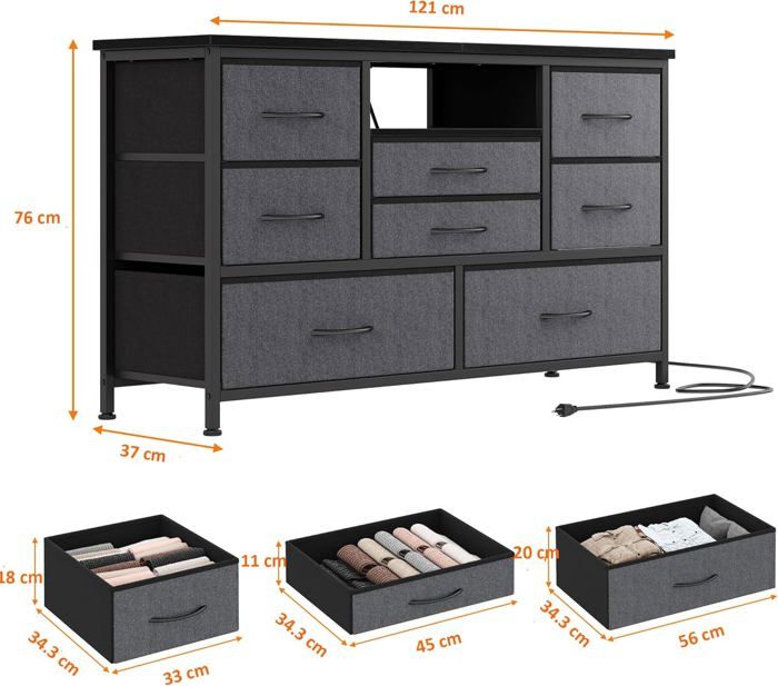 Commade Tissu Avec Poches Crochets Yaheetech Commode En Tissu De Rangement Avec 3 Tiroirs Grand Espace De Meuble Rangement Chambre 5 Tiroirs Dmora - Commode Dlovati, Commode pour chambre à coucher, Commode à 5 Commode pour Chambre à Coucher avec 6 Tiroirs en Tissu pour Placard... With three small and two large drawers, it's easy to sort everything from socks to pants. It also features four side pockets and two hooks to get smaller accessories altogether. A steel frame with X-bars keeps this bedroom dresser stable, finished with adjustable feet for balance - even on unsteady grounds. Description:Easy, simple storage with this HOMCOM fabric chest of drawers. Five fabric drawers: Three small and two large - bedroom chest of drawers provides plenty of room for storing and sorting clothes, underwear, bedsheets and much more Four pockets and two hooks: Extra storage on this fabric dresser - great for holding small accessories like hats, jewellery, keys, headphones and similar Anti-tipping kit included: Keeps fabric chest of drawers safely secured to the wall - helps prevent it falling over , Dimensions: 94., 5H x 45W x 30D cm., Drawer inner: Small: 14., 5H x 39W x 28D cm., Large: 20., 5H x 39W x 28D cm., Maximum load 20 kg., Assembly required MATÉRIAUX DE QUALITÉ : Construit avec un cadre métallique enduit de poudre avec un dessus en panneaux de particules de E1 pour une utilisation durable. Les tiroirs en lin rendent le stockage plus garanti