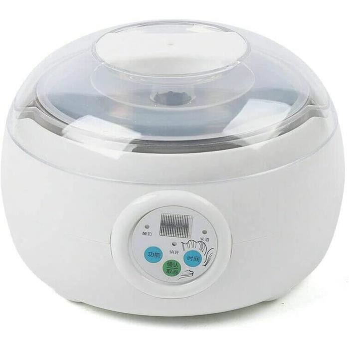 Durée standard : 8 h (réglable 1-99 h) Contenu de la livraison : 1 machine à yaourt. 9 Pots Verre 100 Ml Yaourtière Numérique Automatique Avec Contrôle De Température Machine Yaourt Maison Natto Vin Riz Pots Verre 1.6L Fermentation Pro : notre produit possède trois fonctions : yaourt, natto et vin de riz. Utilisation : Ce produit peut être utilisé pour faire du yaourt, du natto et du vin de riz. À cette température élevée, la culture Rhizopus, indispensable à la fermentation, lutte pour survivre, ce qui peut nuire à la qualité du produit fini., 4., Les mesures étant prises à la main, les tailles indiquées peuvent varier de 1 à 3 cm. Les paramètres par défaut supérieurs simplifient les recettes de base faciles à utiliser. Yaourtière - Livraison gratuite Max Durée standard : 8 h (réglable 1-12 h) vin de riz. 1 pot intérieur avec couvercle., 1 couvercle., 9 tasses., 1 manuel en anglais. Durée standard : 16 h (réglable 1-24 h) Fermentation universelle. C'est également un cadeau attentionné pour des occasions telles que la fête des mères, la fête des pères, Noël, la gestion immobilière, les anniversaires et Thanksgiving., Indications : 1., Veuillez vérifier soigneusement la taille du produit avant d'acheter., 2., Veuillez lire attentivement le manuel (français non garanti) et portez une attention particulière aux précautions de sécurité., 3., Si les températures intérieures dépassent 95 °F en été, le vin de riz n'est pas recommandé. Efficacité énergétique : la machine de 20 W de faible puissance consomme moins d'énergie sans compromettre les performances, ce qui maintient des températures stables tout en minimisant les coûts d'électricité. Yaourts à boire maison Recette ultra simple pour 6 bouteilles : • 1 ferment lactique (ou 1 yaourt entier nature) • 1 L de lait entier... Achetez Yaourtière numérique automatique de 1,6 l avec 9 bocaux en verre et pot intérieur en acier inoxydable, 4 modes pour yaourt fait maison, riz, vin... Température standard : 40 °C/104 ℉ (réglable 40-45 °C/104-113 ℉). Température standard : 36 °C / 96,8 °F (réglable 36-45 °C / 96,8 - 113 °F). Détails : Petites tasses pour téléphone portable : 9 tasses individuelles de 3,52 oz vous permettent de faire exactement les bonnes portions ou d'essayer différentes saveurs à la fois, ce qui rend le temps du dessert merveilleux. Dimensions du produit : 26 x 21 x 12 cm / 10,24 x 8,27 x 4,72 pouces Dimensions de l'emballage : 28 x 23,5 x 22,5 cm/11,02 x 9,25 x 8,86 pouces Poids brut : 2,2 kg., Poids net : 1,85 kg.