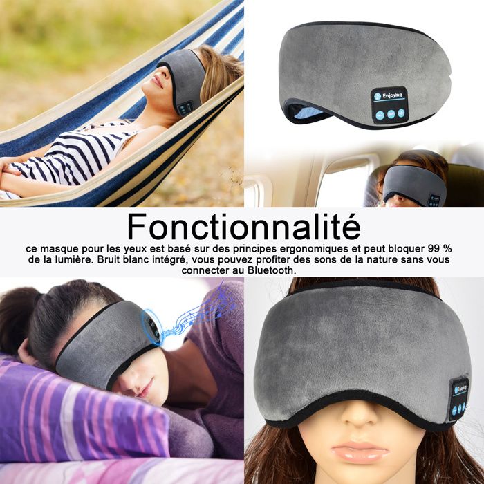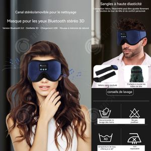 Design de pont de nez doux : afin de répondre à vos différents besoins, que ce soit au bureau, en avion, au lit, etc. Casque intelligent et masque pour les yeux de sommeil 2 en 1. Les écouteurs de sommeil utilisent Smart 5.0 avancé qui fonctionnait mieux que les autres types de... Super longue autonomie en veille : le casque de sommeil sans fil dispose d'une batterie au lithium rechargeable intégrée. Dimensions : 16 x 13 x 6 cm., Poids : environ 100 g. Masque Yeux Bloquant Lumière Lavable Casque De Sommeil Bluetooth 5.0 Sans Fil, Masque Pour Les Yeux Lavable 3D, Haut-parleurs Stéréo Ultra Fins Réglables, Microphone Mains Libres Casque Anti Bruit De Nuit 【Convient à la plupart des appareils】Le cache-œil avec écouteurs permet une correspondance intelligente et est compatible avec la plupart des appareils sur le marché, les téléphones mobiles/tablettes/ordinateurs portables sont très adaptés Vous pouvez le mettre dans votre sac à dos lorsque vous êtes en voyage d'affaires. nous concevons ce design innovant pour casque de sommeil Profitez de 8 heures de musique/conversation. Il faut 1,5 à 2,5 heures pour charger complètement. Klaxon : 32 ohms 0,05 W Batterie : batterie 150 mAh 3,7 V. Charge pendant 2 heures, écoute de la musique pendant 8 heures. On est sur un bon rapport qualité/prix avec ce bandeau connecté conçu pour les personnes qui souhaitent se détendre avant de dormir tout en réduisant le bruit environnant, à condition que celui-ci ne soit pas trop important Caractéristiques du produit : Nom : cache-œil pour casque de sommeil. 【Compatibilité】Nos écouteurs de sommeil sans fil sont si mignons et pratiques, parfaits pour Noël, la fête des mères, ou un anniversaire pour votre famille et vos amis Masque de sommeil intelligent - Bouchons d'oreilles 5.0 - Masque pour les yeux