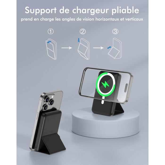 Est-il possible d'utiliser le support sans recharge sans fil ? Batterie Externe Belkin Yingyu Batterie Externe Magnétique Sans Fil, 10000mAh Power Bank Pliable Batterie Mag-Safe Type Chargeur Portable Pliable 22.5W 1 Chargez 3 Appareils 2 Lighting&Type-C Input 3 Utilisation Magnétique 4 Recharge Rapide Batterie Externe Pour Iphone, 10000Mah Batterie Externe Avec Magsafe... Le batterie externe magnetique n'est disponible que dans les étuis magnétiques pour le chargement magnétique sans fil et n'est pas compatible avec les étuis de téléphone non-Mag-Safe tels que l'Otterbox Defender. Cependant, la perte d'énergie pendant le transfert peut générer un peu de chaleur. Podoru Batterie Externe Magnétique sans Fil, 10000mAh Power... Avec quels modèles de téléphones portables ce batterie externe iPhone est-il compatible ? 1 10000mAh Haute Capacité 2 Mini Design 3 Design Intelligente 4 Sûr Efficace Il s'agit d'un phénomène normal. Podoru Batterie Externe Mag-Safe 10000mAh,avec 2 Câble Charge Q&R sur Podoru Batterie Externe Magnetique Pour de meilleurs résultats, utilisez un adaptateur secteur d'une puissance minimale de 12 W (non fourni).