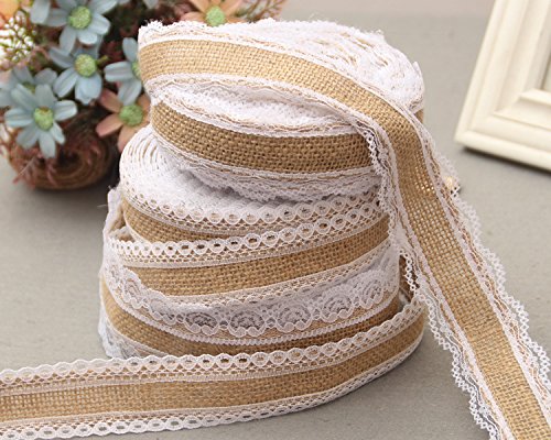 Bordure Et Ornement De Couture - Jute Dentelle 6X2M Ruban Toile Fdit ruban de toile de jute 5 pièces dentelle lin rouleau toile de jute... Décoration Mariage Boho Yongme-3 Pièces 4 * 2M Vintage Toile De Jute Hessois Dentelle Toile De Jute Blanche Et Beige toile de jute au etre Le matériau durable: le rouleau de toile de jute naturelle est faite de corde naturelle et dentelle blanche dans des styles souples, chaque rouleau de ligne de sac est fourni avec une aiguille pour fixer le sac dans le cas de la diffusion Dimensions: longueur 2M (4cm * 2M); Largeur: 4cm livraison: 3 x 2m bande de toile de jute naturel