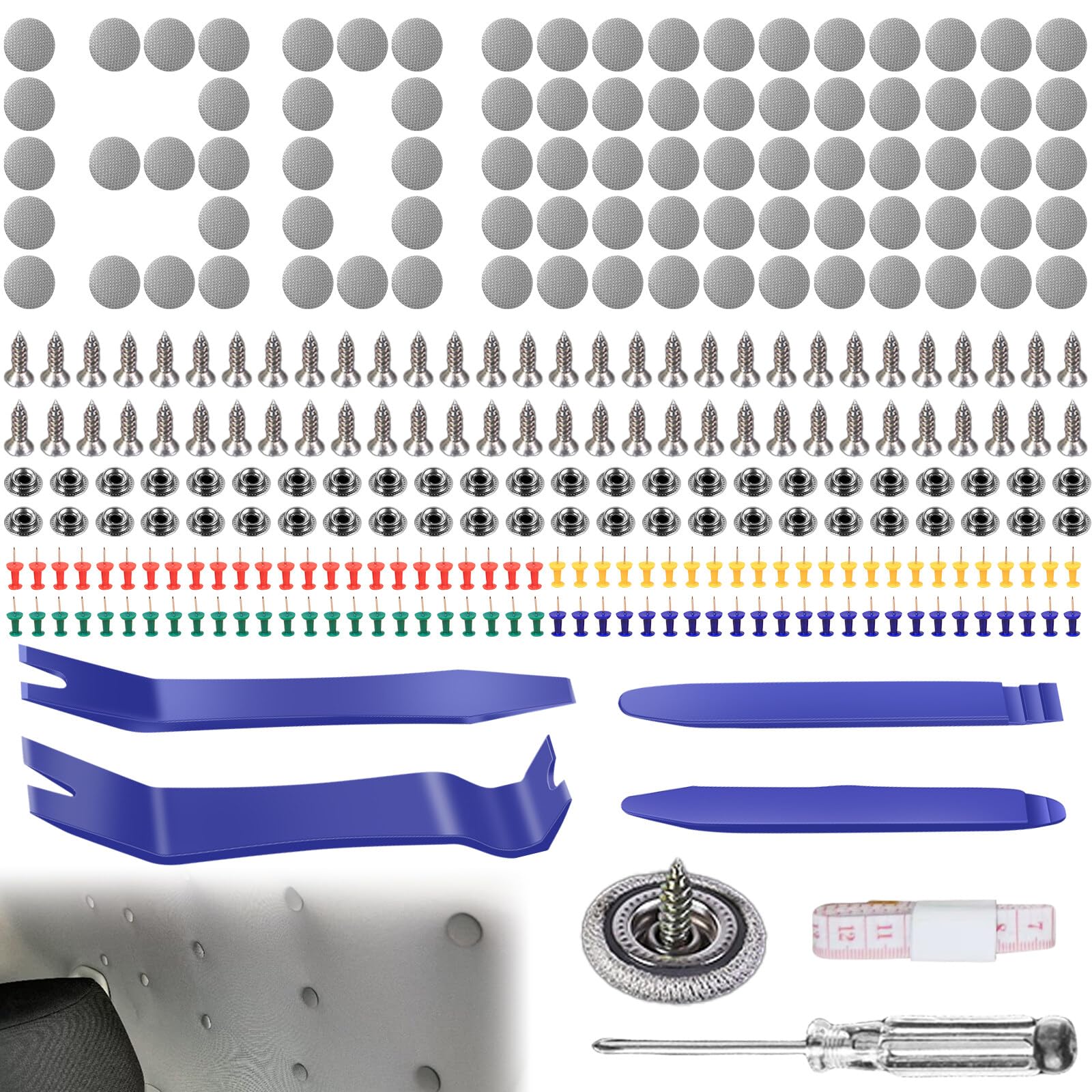 Il contient tout le nécessaire pour réparer efficacement un toit affaissé. Peinture Ciel De Toit Voiture Ywchoshe 100 Pcs Kit De Rivets De Réparation De Ciel De Toit Voiture, Outils Kit De Vis Boutons De Réparation De Toit De Voiture Décoration, Avec épingles, Tournevis, Ruban à Mesurer, Etc(Gris Kit Vis Boutons Toiture Les vis et la base en métal revêtu sont résistantes à l'usure, garantissant une réparation fiable et durable des ciels de toit affaissés de votre véhicule., 2., Intérieur propre et organisé : Les boutons de ciel de toit sont conçus pour réparer les ciels de toit desserrés ou affaissés, contribuant ainsi à maintenir l'intérieur de votre véhicule propre et bien rangé. Réparation D'un Vieux Toit En Bois Charpentier Avec Des Outils Sur Le... Espacement recommandé : 12 - 15 cm pour un maintien optimal. Convient à une variété de véhicules – Convient à la plupart des types de véhicules, y compris les voitures, les camions, les bus et les camping-cars. Réparation intérieure soignée – Ces kits de réparation de garniture de toit de voiture sont conçus pour fixer solidement les garnitures de toit détachées... Conseils : Les dimensions sont mesurées manuellement ; une légère marge d’erreur est possible. Que vous répariez un véhicule particulier ou utilitaire, ce kit polyvalent vous offre une solution pratique pour tous vos besoins de réparation de ciel de toit. Ce kit polyvalent assure un ajustement parfait sur une variété de modèles et répare facilement les garnitures de toit affaissées. Comparatif des meilleurs produits pour refaire un ciel de toit de voiture Caractéristiques : Matériau : Métal, tissu Couleur : Argent Taille : Comme indiqué sur la photo Contenu de l’emballage : 1 tournevis 1 règle souple 100 œillets 100 rivets 100 punaises 100 vis Garantie après-vente : Pour toute question, veuillez nous contacter à temps et nous vous répondrons dans les plus brefs délais. Kit de réparation complet pour une réparation facile : 100 rivets en velours gris (19 mm), 100 œillets, 100 vis, 100 goujons, 1 tournevis et 1 mètre ruban.
