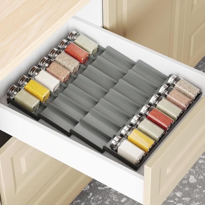 Nous nous ferons un plaisir de vous conseiller. Range épices Extensible Ordonnateur Épices Tiroir Okiuen 4 Niveaux | Extensible 30-60cm | Rangement Cuisine Pratique étagère épices Extensible Facile à nettoyer : Ce range epices cuisine tiroir est fabriqué en plastique dur, d'épaisseur et de durabilité modérées. Range Epices Cuisine Tiroir ZEKUN Range Epices Cuisine Rangement Epices Tiroir 4 Niveaux Étagère à Etagere A Epices range épices Comparé au bois, il est résistant à la déformation et à la décoloration, plus résistant aux chutes que l'acrylique et plus léger. Largeur réglable : La largeur de ce rangement epices cuisine tiroir est réglable entre 30 et 60 cm, ce qui le rend adapté à différentes tailles d'espace. Jexnovashop-Rangement Epices Cuisine 8pcs, Extensible De 23cm À 46cm Rangement Epices Tiroir, Insert De Tiroir À Épices, Ajustable Pour Placards Et Tiroirs... (Ce produit n'inclut pas les bouteilles d'épices., ) Elle peut être utilisée sans installation. OKiuen Tiroir à épices - largeur extensible (30-60 cm) Nous sommes très heureux de vous présenter notre produit, qui a été soigneusement conçu et se distingue par son design unique et ses excellentes performances. Empilez efficacement jusqu'à quatre niveaux et organisez sans effort votre tiroir d'étagère à épices dans cet organisateur de tiroir polyvalent.Vous pouvez l'étendre à... Conception à quatre niveaux : Cette structure multicouche range epices cuisine permet de gagner de la place et de ranger la cuisine. Veuillez vérifier la hauteur du pot avant utilisation. Rangement pratique : La conception en tiroir de ce rangement epices permet de repérer facilement les épices d'un seul coup d'œil ; l'étagère inclinée rend l'étiquette clairement visible et réduit le temps d'identification. Description du produit : organiseurs de tiroirs de cuisine 1., Matériau de haute qualité : Ce rangement cuisine tiroir est fabriqué en plastique sans BPA, robuste et durable. Un simple coup d'éponge suffit pour le nettoyer quotidiennement et le garder propre.