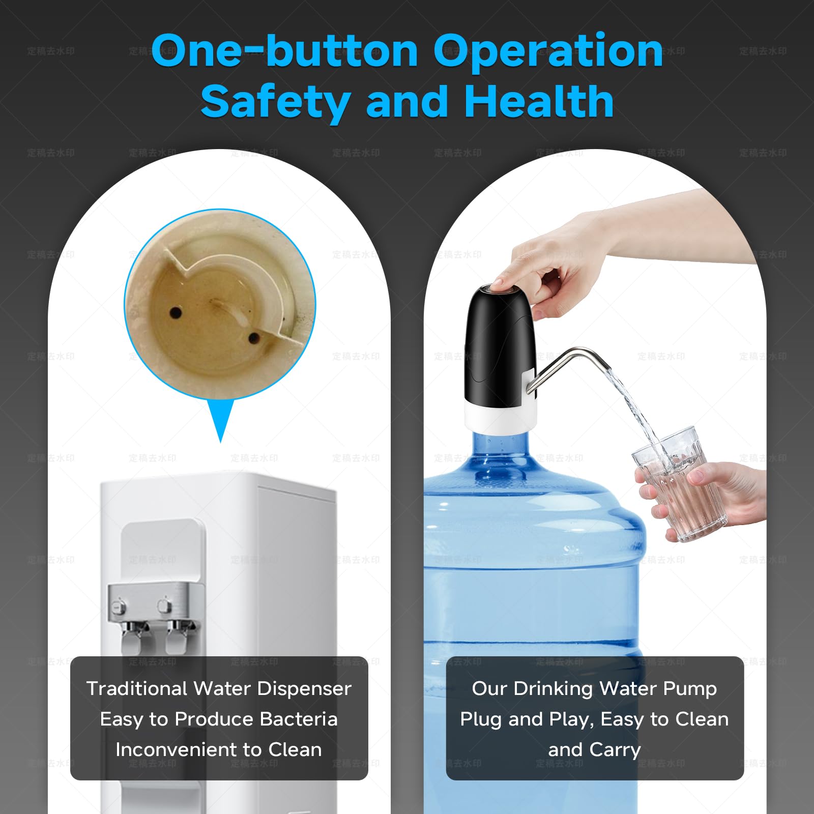 La pompe pompe l'eau rapidement et sans attendre, une tasse d'une capacité d'environ 350 ml peut être remplie en environ six secondes, et l'angle de 45 degrés du débit d'eau naturel biseauté pour attraper l'eau sans avoir besoin de tenir la bouilloire dans votre main, ce qui la rend facile à attraper l'eau Silencieux et étanche : la pompe électrique du distributeur de bouteille d'eau fonctionne à seulement 45 décibels, ce qui équivaut à un chuchotement intérieur, silencieux, silencieux et sans perturbation. Pèse alcool en argent - Moinat SA - Antiquités décoration, pèse alcool La pompe à eau potable est légère (250 g) et portable (62 mm x 133 mm) Distributeur Eau Automatique ZME09453-Pompe à Eau électrique Automatique. Bouteille D'eau. Chargeur USB. Distributeur D'eau Pompe Eau Bureau Cuisine Maison Facile à utiliser : la pompe à eau portable est facile à utiliser, il suffit d'appuyer sur l'interrupteur pour distribuer de l'eau et d'appuyer à nouveau pour l'éteindre, même les enfants et les personnes âgées peuvent l'utiliser facilement. Fréquence nominale : 50 Hz. Distributeur d'eau pour bouteille de 5 gallons, distributeur de... Matériau et application : la pompe à eau manuelle pour bouteille de 18 litres est fabriquée en silicone de haute qualité et tuyau de sortie en acier inoxydable, sain et sûr, non toxique et sans danger. La pompe est intégrée avec un chemin complet de gel de silice, verrouillage de l'eau sûr, plus étanche, plus pas de compartiment de rangement interne pour éviter la pollution secondaire pour garantir que chaque tasse est de l'eau potable fraîche, sûre et saine Distributeur d'eau de 15 litres, pope à eau potable électrique... Silencieux et étanche : la pompe électrique du distributeur de bouteille d'eau fonctionne à seulement 45 décibels, ce qui équivaut à un chuchotement intérieur, silencieux, silencieux et sans perturbation. Contenu de l'emballage : 2 pompes électriques pour distributeur de bouteilles d'eau. 【Pompe à eau électrique】La pompe à eau manuelle pour bouteille de 18 litres dispose d'un design électrique avec une batterie au lithium intégrée de 1200 mA, ce qui est pratique pour charger 4 à 8 seaux d'eau à la fois (utilisez le port USB universel). Haute compatibilité : la pompe électrique du distributeur de bouteille d'eau s'adapte aux seaux de 5,5 cm et peut être utilisée avec une grande variété de seaux, tels que les seaux à goulot, les bouteilles d'eau, les sacs fourre-tout et plus encore. Haute compatibilité : la pompe électrique du distributeur de bouteille d'eau s'adapte aux seaux de gallon avec col de 5,5 cm et peut être utilisée avec une grande variété de seaux, tels que les seaux à goulot, les bouteilles d'eau, les sacs fourre-tout et plus encore