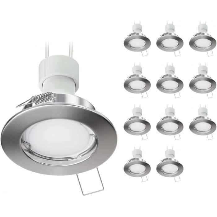 Spot Encastré Rond Trou 85mm Lampe LED GU10 8W Plafonniers Magasin Entree 230v Noir 6000k 86393253 Profitez d'une solution d'éclairage élégante et pratique dans vos pièces ! Spot Encastré Rond Noir 10x Plafonnier Encastré ZOBE Noir Mat Rond 107mm 1x GX53 Max. 25W Plafonnier Design Intemporel Noir Mat Un éclairage parfait pour chaque pièce Que ce soit dans le salon, la chambre à coucher, la salle à manger, la cuisine ou le bureau, le plafonnier encastré ZOBE s'adapte à toutes les pièces et assure un éclairage agréable et uniforme. Installation peu encombrante - faible profondeur d'encastrement] - Grâce à la faible profondeur d'encastrement de la douille GX53,le plafonnier encastré peut être installé de manière particulièrement peu encombrante,ce qui le rend idéal pour les pièces aux plafonds bas ou disposant de peu d'espace 6 pièces plafonnier encastré ZOBE II, blanc mat, carré, 11 x 11cm, 509lm, blanc chaud.[Y3011... [Un éclairage parfait pour chaque pièce] - Que ce soit dans le salon, la chambre à coucher, la salle à manger, la cuisine ou le bureau, le plafonnier encastré ZOBE s'adapte à chaque pièce et assure un éclairage agréable et uniforme. [Source lumineuse interchangeable - Douille GX53] - Le plafonnier encastré ZOBE est doté d'une douille GX53 qui vous permet de choisir une source lumineuse adaptée à votre goût. [Contenu de la livraison] - Ampoule non comprise dans la livraison de Plafonnier encastré Des prix pour se sentir bien avec une qualité fiable directement du fabricant allemand. [Forme compacte] - Diamètre : 107 mm ; Hauteur : 42 mm ; Diamètre de montage : 87 - 105 mm ; Profondeur de montage : 40 mm ledscom.