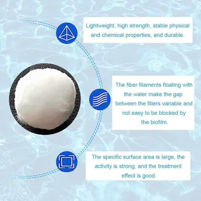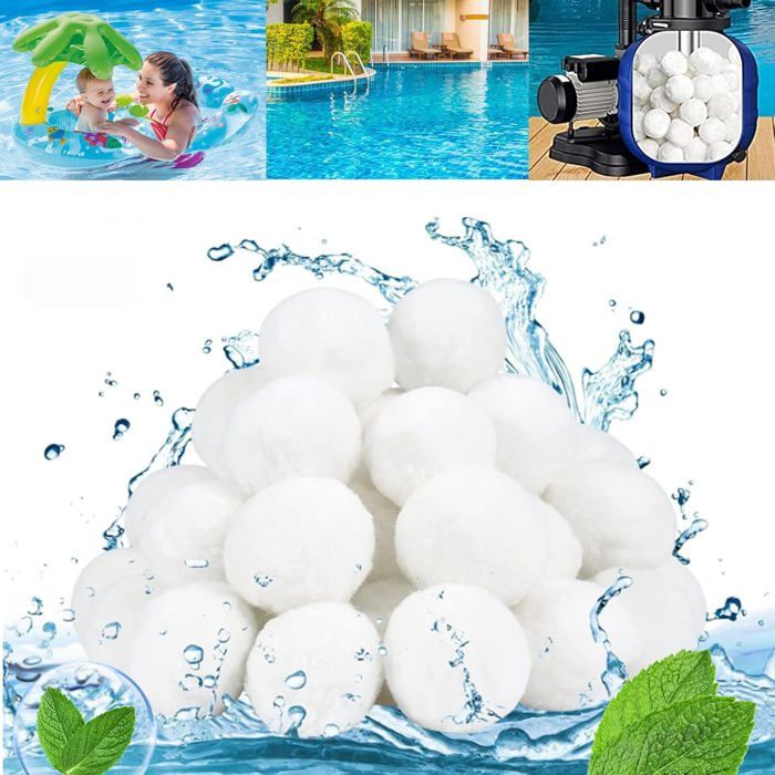 Balles Filtrantes,Boules de Filtre de Piscine,Filtre pour Piscine de 【Filtre Sable Piscine Fiable】 Les balles filtrantes pour piscine ont vitesse de filtration élevée, un faible rendement énergétique, une grande capacité d'adsorption et une longue durée de vie. Balles Filtrantes Réutilisables Lavables ZORB Balles Filtrantes Pour Piscine - Pour Systèmes De Filtration à Boules Filtrantes Pour Piscine Les balles filtrantes piscine hautement élastiques peuvent filtrer les impuretés de l'eau rapidement et puissamment. Boules filtrantes pour systèmes de filtration à sable sont parfaites pour les filtres à sable de piscine d'été et autres filtres à eau, l'eau claire rend la natation plus amusante pour vous et vos enfants! Boules de Filtre de Piscine, 700g Pool Filter Balls, Média... tillvex® Balles filtrantes de piscine 700 g pour filtre à sable [Design 2025] | Remplace 25 kg de sable filtrant | Balles filtrantes extra durables pour une eau... 【Largement Utilisé】Ballefiltrante Piscine 700 g Équivalent à 25 kg de sable filtre piscine, mais plus économe en énergie que le sable filtrant traditionnel. 【Facile Utiliser】Les boules filtrantes piscine filtration à sable de la piscine sont très faciles à remplacer, Contrairement au sable, la boule filtration piscine ne bouche pas votre filtre et nécessite moins de rétrolavage pour l'entretien. Ces Balles Filtrantes ne sont pas seulement utilisées dans les systèmes de nettoyage et de filtration des piscines, mais conviennent également aux piscines, aux aquariums, aux pompes de filtration, aux aquariums et autres supports. En raison de la différence de réglage de la lumière et de l'écran,la couleur de l'élément peut être légèrement différente de celle des images. 【Recyclable Réutilisable】Le filtre en forme de boule peut être réutilisé car il peut être lavé en machine sans agglomération. Spécifications : Matériau : Polyester Quantité : 700 g Couleur : Blanc Taille : 3-5 cm/1., 18-3., 14 in Forfait comprend : 1 paquet de boules de nettoyage de piscine (700g) Remarque: Veuillez permettre une légère différence de dimensions en raison de différentes mesures manuelles.