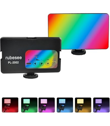Avec port de charge de type C sur la lampe vidéo, vous pouvez l'utiliser pendant la charge, plus besoin de vous soucier du problème de batterie insuffisante. Compatibilité : parfait pour les jeux, les vidéos YouTube, les selfies, les fêtes, le vlogging, la photographie de nature morte, la photographie de portrait, la photographie d'enfants, et plus encore. Autonomie Portative Toute la Journée : Fonctionne 2 à 5 heures par charge (min/max luminosité) + recharge par Type-C pendant l'utilisation. 【Rechargeable】Les mini lumières LED sont dotées d'une batterie au lithium rechargeable intégrée de 1000 mAh, le temps de charge est d'environ 2 heures, la luminosité maximale de sortie jusqu'à 2 heures, la luminosité minimale jusqu'à 10 heures. Flash Appareil Photo Zeadio Lumière Vidéo RGB Pour Caméra 【Variable】Avec 3 supports de griffe, idéal pour connecter simultanément divers accessoires, tels que la lampe vidéo, le flash, le microphone, le smartphone, etc. Lumière LED de la caméra avec écran LCD intégré pour des lectures précises, vous permettant de travailler plus efficacement. 2 Lape vidéo LED Portable, 120c bâton Luineux de Photographie LUXCEO... Studio Miniature de Poche : Design mini et léger tient dans la paume ; idéal pour les voyages, soirées, photos de produits et pour créer instantanément une ambiance cinématographique. Professionnel : la lampe vidéo est dotée de 100 perles LED à rendu des couleurs élevé, d'un angle de faisceau de 120 °, d'un éclairage maximum de 800 lux à 0,5 m et d'un IRC élevé de 95 +. Illumination Professionnelle : 100 LED (31 chaudes + 31 froides + 38 neutres) délivrent 800 lm à 120° avec une précision de lumière solaire CRI95+. Lampe LED Vidéo Pour Appareil Photo Zeadio Lampe Vidéo LED Pour Appareil Photo - Température De Eclairage Video Cette petite lumière LED offre un gradation de 10% à 100% pour un éclairage LED de qualité studio partout. Autonomie Portative Toute la Journée Système de Fixation Polyvalent : Filetage intégré 1/4 et trois emplacements griffe froide pour ajouter micros, moniteurs ou lumières supplémentaires sur cages, rigs ou configurations à main levée.