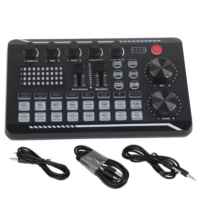 Table Mixage Carte Son Live M6 Portable - Table De Mixage Audio Avec Réduction De Bruit Et Changeur De Voix - Pour Streaming Et Enregistrement Accessoire Streaming Gaming Caractéristiques:- Nom : Carte son Live- Couleur : noir- Matériau : ABS-Tension de charge: DC5V- Matériel de support : téléphone portable, tablette, ordinateurEmballage inclus:1 X carte son1 X câble USB, 1., réglage du grand bouton, réglage du fader, 27 types d'effets sonores, éclairage coloré, diffusion en direct sur double téléphone., 2., Qualité sonore : la qualité sonore est plus claire et plus stable, assurant une sensation de profondeur et d'espace entre l'extension et la voix, rendant le son pendant la diffusion en direct plus doux et tridimensionnel., 3., Accompagnement sans fil compatible Bluetooth: compatible Bluetooth 5., 0, touche de commutation indépendante compatible Bluetooth, ouvrez la clé compatible Bluetooth indépendamment, réception inférieure ou égale à 5m, distance effective de 10m., 4., Réduction du bruit : réduction du bruit en un clic for améliorer la qualité du son, élevez votre voix à un autre niveau., 5., Optimisez la voix : la belle seconde voix appelle les fans, plusieurs effets sonores, fonction exceptionnelle, optimisez la voix., 6., Appareils pris en charge : ordinateur, téléphone, tablette compatible, haute compatibilité, prend en charge la plupart des systèmes principaux., 7., Avec Bluetooth 5., 0, il existe une variété d'effets sonores Table De Mixage Portable Zerone Carte Changeur De Voix Carte Son En Direct Changeur De Voix Table Mixage Behringer Découvrez tous nos conseils pour bien acheter une table de mixage pour débutant ou pro en 2026. Quel modèle choisir, comment les comparer, quel budget prévoir Ordinateur téléphone changeur de voix Audio carte son casque Microphone...