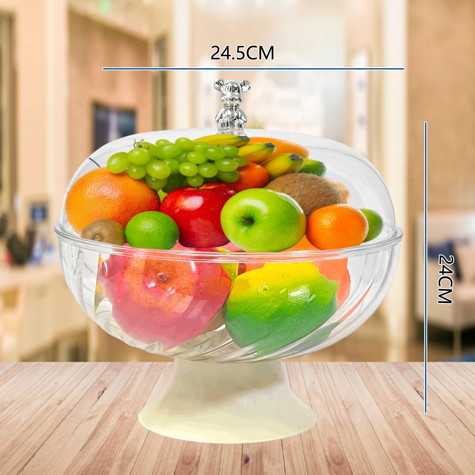 Matériau robuste et utilisation polyvalente : fabriqué en plastique inodore et résistant aux chocs, le bol à fruits se nettoie facilement avec de l'eau. La housse protège de la poussière et des insectes. Polyvalent : idéal pour stocker et présenter des fruits, du pain, des beignets, des bonbons, des biscuits et d'autres friandises. Décoratif et fonctionnel : la forme élégante avec pied fait de ce bol à collation un accroche-regard décoratif sur chaque table. Juvale Schwarze Netz-Obstkörbe mit Deckel für Obst, Restaurant, Küche Que ce soit dans la cuisine, sur la table à manger, au bureau ou lors d'un pique-nique, ce bol est un accessoire pratique et élégant pour toutes les occasions. L'égouttoir intégré permet de laver et de sécher directement les fruits ou légumes, tandis que le couvercle transparent protège les aliments de manière hygiénique. Bol de lavage multifonction pour fruits et légumes, récipient passoire à fruits avec couvercle, panier égouttoir scellé 2 en 1, égouttoir et panier de... Format pratique pour les fêtes - Avec une taille d'environ 24 × 24 × 24 cm, le bol en plastique offre suffisamment d'espace et est facile à nettoyer et à empiler, un must pour toute cuisine ou bar moderne. Bol à fruits pratique avec couvercle pour la maison et les fêtes. Stable et de qualité alimentaire : fabriqué en plastique de qualité supérieure sans BPA, le bol à collation est inodore, robuste et sûr pour le contact avec les aliments. Corbeille 24cm Vert ZoeQide - Bol à Fruits Avec Couvercle Et égouttoir - Bol En Bol Avec Couvercle Coupe à fruits 2 en 1 avec couvercle : Cette coupe combine un couvercle transparent et un égouttoir intégré, idéal pour laver et conserver fruits, légumes et en-cas. Le couvercle protège de la poussière et des insectes.Stable et de qualité alimentaire : Fabriquée en plastique de haute qualité sans BPA, cette coupe est inodore, durable et sans danger pour le contact alimentaire... Convient également comme bol de service pour salades ou pâtisseries.