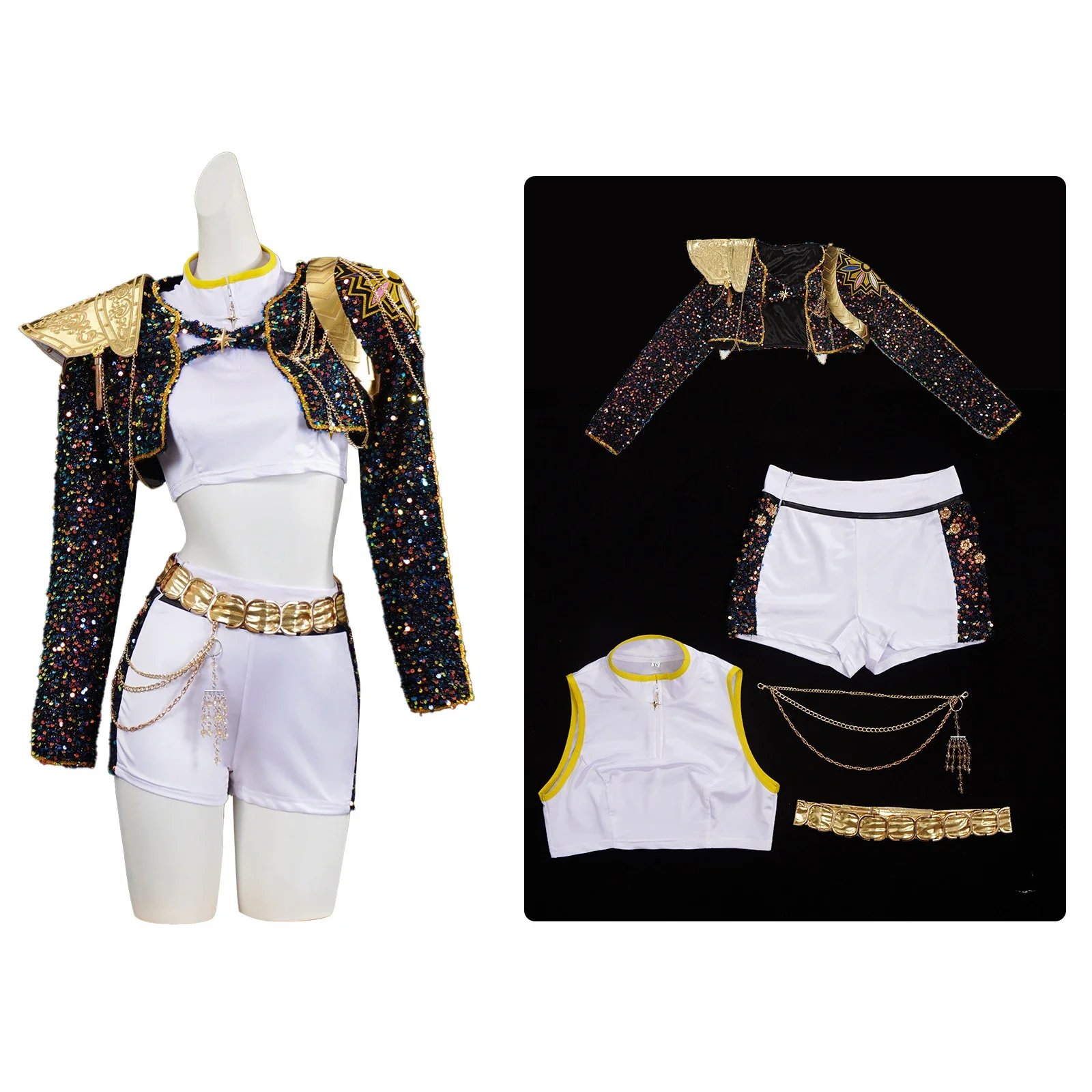 Sa coupe professionnelle assure un ajustement confortable pour votre enfant. Generisch 𝙆𝙥𝙤𝙥 Deon Kostü Kinder, Rui ira Zoey K Pop Cosplay... Avec une couture exquise et des accents métalliques luxueux pour une polyvalence de style ultime. Veuillez comparer les tailles détaillées avec les vôtres avant d'acheter. Costume Cosplay Enfant Kpop Generisch Kpop Rumi Zoey Mira Costume De Cosplay Pour Enfant Costume Kpop Enfant 4-10 Ans Transformez-vous en votre idole préférée Kpop Rumi Zoey Mira Costume de cosplay pour enfant - Costume de chasseur Kpop Rumi Mira Zoey Idol - Tenue de scène d'Halloween - Cosplay - Ensemble complet avec accessoires pour fille Fabriqué avec une attention particulière aux détails et à l'authenticité, ce costume capture l'essence du spectacle emblématique de Mira/Zoey/Rumi. L'ensemble complet de Zoey comprend : crop top + jupe + épaulière + 2 boucles d'oreilles + ceinture + chaîne de pantalon, tout ce dont vous avez besoin pour recréer le look emblématique de la scène de Zoey. Diverses occasions : idéal pour Halloween, spectacle sur scène, carnaval, fête à thème, fête scolaire, spectacle de cosplay et port quotidien. Un cadeau original pour les fans d'anime, les amateurs de films et les amateurs de K-pop Idole vont l'adorer. Contenu : Tenues de scène Rumi : haut blanc ventre nu + short + chaîne de pantalon dorée + pendentif à pompons. Tissu confortable de qualité supérieure : fabriqué en polyester et satin de haute qualité, le costume Rumi Mira Zoey est doux, durable et résistant aux plis. Costume de cosplay Kpop Rumi Zoey Mira, Chasseuse de Démons Idéal pour les conventions d'anime, les bandes dessinées, Halloween, les spectacles sur scène, les spectacles de cosplay, les concerts d'idoles et la vie quotidienne. Coupe flatteuse pour la plupart des filles : ressemblez à une pop star brillante dans nos magnifiques tenues de scène. Entre les tailles ? Taille plus grande pour une coupe ample.