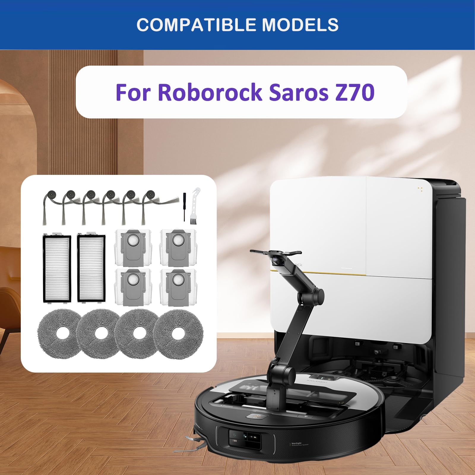 Roborock Qrevo Curv vs Roborock Saros Z70: Quelle est la différence Matériaux de haute qualité : les pièces de rechange pour aspirateur sont faites de matériaux de haute qualité, durables et garantissent le meilleur état de fonctionnement de l'aspirateur et une longue durée de vie Filtre HEPA et sac à poussière : le filtre HEPA filtre efficacement la poussière et la saleté de l'air, et le sac à poussière utilise un système de filtration multicouche à haute efficacité pour capturer 99,999 % des poussières fines et les empêcher de revenir dans l'air Accessoires Aspirateur Roborock Kit D'accessoires De Rechange Compatible Avec Aspirateur Robot Roborock Saros Z70, Comprend 2 Brosses Principales + 8 Brosses Latérales + 6 Filtres HEPA + 8 Tampons + 8 Sacs à Poussière Filtres HEPA Aspirateur Robot Compatibilité : les pièces de rechange pour aspirateur sont compatibles avec les aspirateurs Roborock Saros Z70, veuillez faire attention au modèle avant d'acheter Roborock Saros Z70 robot aspirateur laveur avec bras mécanique OmniGri... Caractéristiques : Matériel: ABS Coloris : gris., Dimensions : voir photo. INF Kit de pièces de rechange pour aspirateur Roborock