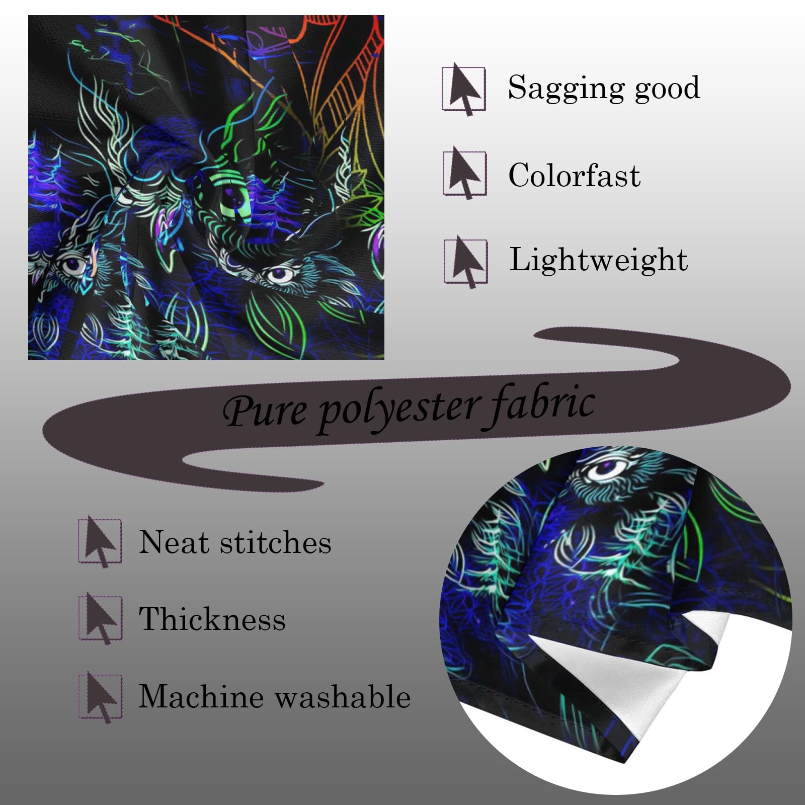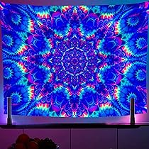 Tapisserie à lumière noire réactive aux UV qui brille dans le noir... Dimensions : 150 x 130 cm, 150 x 200 cm, la tapisserie est fabriquée en tissu polyester léger de haute qualité avec des finitions cousues à la main qui est super doux, durable Grâce à la technologie d'impression 3D, la couleur est magnifique et belle, ne se décolore pas, et est pratique pour le nettoyage Décoration Murale Psychédélique 150x130cm HURRISE Tapisserie Réactive Aux UV Tapisserie Décorative Réactive Aux Tapisserie Murale UV (2 clous non marquants + 2 pinces) Tenture Murale Squelettes Amoureux - Réactive à la Lumière Noire Avec un sac d'installation gratuit. Légèrement élastique.