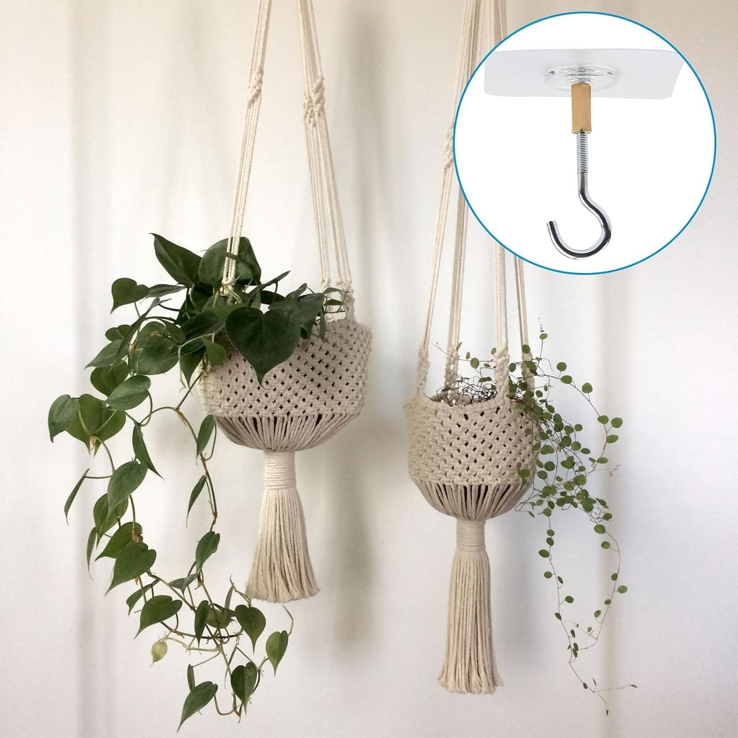 Démontables: Nos crochets pour plantes de plafond sont faciles à enlever sans laisser de résidus ou de dommages. Forte adhérence : le dos adhésif de nos crochets de plafond assure une forte adhérence à diverses surfaces, y compris les plafonds, les murs et les portes. Facilement amovible : nos crochets de plafond autocollants pour plantes peuvent être facilement retirés sans laisser de dommages ou de résidus. Installation Facile: Le paquet comprend 10 Crochets à plantes auto-adhésifs pour plafond, le design auto-adhésif sans perforation assure une installation rapide et facile, fournissant une solution pratique de suspension de plantes sans perçage. Crochet De Plafond Crochets De Plafond Autocollants QEDBOJE - 4 Montage Mural: Les crochets peuvent être facilement montés sur du verre lisse, du marbre, de l'acier inoxydable, des tuiles, des surfaces en bois peint, des rondins et d'autres surfaces planes, la surface de contact doit être nettoyée avant l'utilisation. Adhesion Forte: Le support auto-adhésif de nos crochets de plafond assure une forte adhésion à une variété de surfaces, y compris les plafonds, les murs et les portes. Crochets Autocollants Inox (15pcs) – Sans Perçage, Étanche, Pour... Utilisation polyvalente : ces cintres sans perçage sont parfaits pour accrocher des plantes, des décorations ou d'autres articles à votre plafond. Description du produit Nom du Produit: Crochets de plafond auto-adhésifs sans poinçonnage Matériau: Laiton, PVC Quantité: 4 Spécifications: Modèles à ouverture standard Matériau de haute Qualité: Les crochets auto-adhésifs sont fabriqués en laiton et pvc de haute qualité et autres matériaux de haute qualité, antirouille et résistants à l'usure, avec une forte capacité de charge allant jusqu'à 10 Livres. Ils offrent un support robuste pour vos plantes sans avoir besoin de percer des trous dans votre plafond Crochet Plante Suspendue Sans Perçage 8 Pièces Crochets Auto-adhésifs Transparents Crochet Rotatif à 360 Attache Plafond Sans Percer Matériaux de haute qualité : fabriqués en PVC durable et en acier inoxydable, nos crochets pour plantes offrent un support robuste sans perçage. Fort pouvoir adhésif : le support autocollant assure une adhérence fiable sur diverses surfaces Le dos réutilisable permet un repositionnement flexible et de multiples utilisations