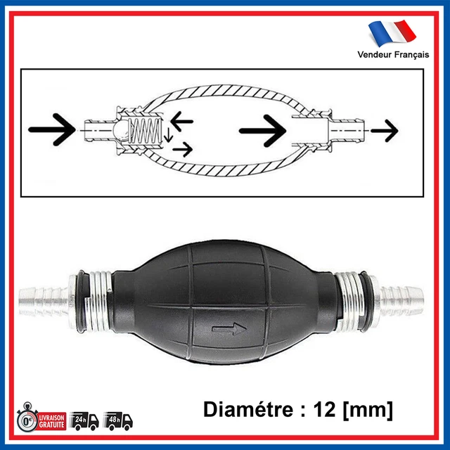 Une poire d'amorçage avec clapet anti-retour est un dispositif utilisé dans les systèmes de carburant des véhicules, en particulier ceux équipés de moteurs à combustion interne, tels que les moteurs à essence ou diesel. Poire D Amorcage Gasoil Pompe D'Amorçage à Carburant 8 MM Pour PEUGEOT 106 1.4 09 1991 04 1996 Pompe Universelle 10mm Ce dispositif permet de pomper manuellement le carburant du réservoir vers le moteur ou le filtre à carburant pour faciliter le démarrage, notamment après une vidange du système de carburant ou lorsqu'il y a de l'air dans les conduites de carburant. Avec une surface d'extr mit de 10 mm et un corps de vanne de 150 X 45 mm, la pompe siphon carburant est l g re et portable. La pression de service est de 0,2 bar et la pression de service varie de 0,1 6 bar Satisfaction client garantie :Nous attachons une grande importance à la qualité de nos produits et à votre satisfaction. Notre équipe sera ravie de trouver une issue favorable à votre problème. Type de Carburant. Essence SP95 / SP98. Diesel / Gasoil. Pour véhicules avec direction à Gauche (LHD). Pour véhicules avec direction à Droite (RHD). Direction... En cas de doute, n’hésitez pas à nous contacter, nous vous guiderons pour choisir le bon modèle. Couleur : NoirDiamètre : 10 mmEmplacement sur le véhicule : AvantType de carburant : Diesel, Gasoil / Essence SP95, SP98Pièce neuve, garantie 2 ans. Mentions légales : Toute utilisation de marque déposée n'est faite qu'à titre de référence à la désignation des produits (Article L 713-6B du code de la propriété). POMPE D'AMORÇAGE ET D'ALIMENTATION CARBURANT Merci de bien vérifier votre pièce avec celle de la photo avant de passer votre commande. POMPE AMORCAGE AVEC CLAPET ANTI-RETOUR UNIVERSELLE DE DIAMETRE 10 [MM] (entrée et sortie) - Contenu de l'emballage : 1 x Poire d'amorçage avec clapet anti-retour